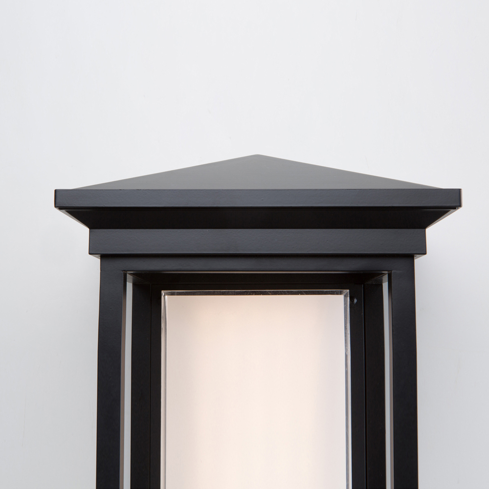 Illuminated by bright LED which uses little energy, the large size exterior wall sconce from the "Overbrook" collection is transitional with clean lines. Made of cast aluminum in a black matte finish.