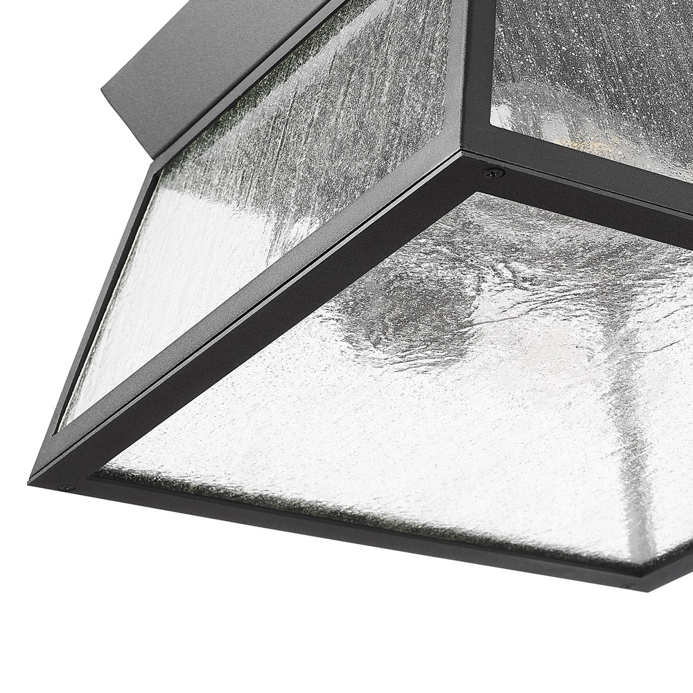 The Lucian collection, designed by Kevin Kraemer, is a distinctive outdoor lantern series renowned for its distinct architecture. These lanterns showcase a rich black finish complemented by the use of lightly clear seeded glassware, adding both style and texture to outdoor spaces. This product is backed by a 25 year warranty on corrosion and 5 year warranty on paint defects. Flushmount shown. (3 different size matching wall sconces are available)