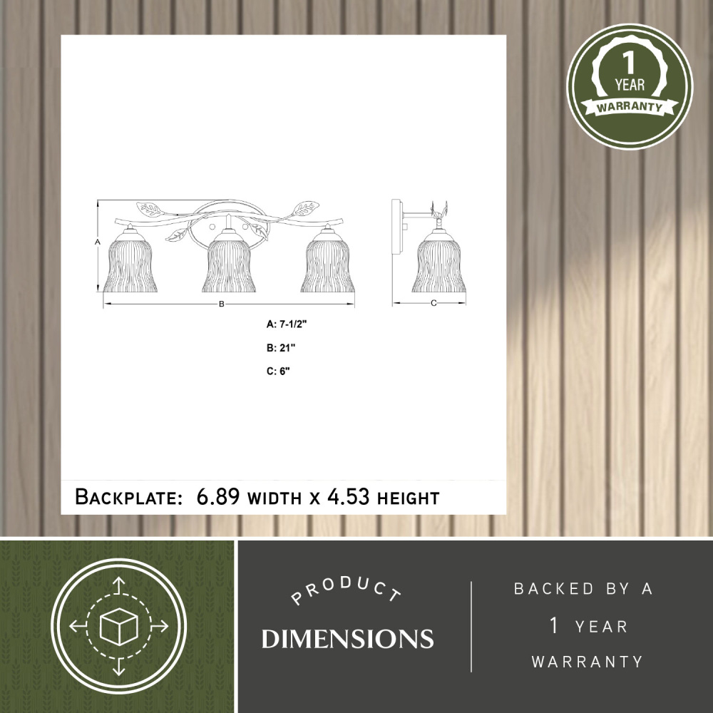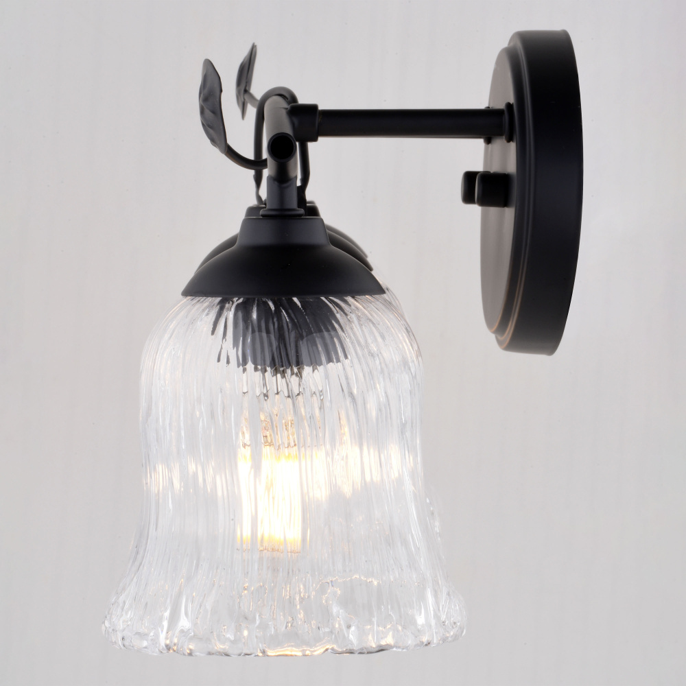 Bring the tranquility of nature to your bathroom with the Fairwood vanity wall light fixture. Key features include three lights for ample and balanced illumination and clear ribbed glass shades that add texture and beautifully diffuse the light while evoking natural forms. Each unique, branch-like shape is tipped with a delicate leaf that brings a touch of the outdoors in. The matte black finish complements the natural inspiration, adding a touch of modern sophistication. Transform your bathroom into a tranquil escape.