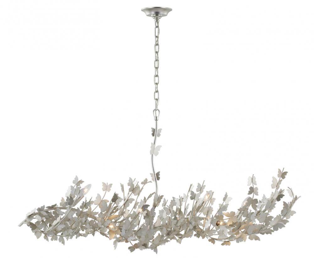 Butterfly motifs come to life with the Farfalle by Julie Neill. The backlit butterflies, available in gold or silver, gather energetically across chandeliers, semi-flush mounts, and sconces. These whimsical fixtures add charm to living rooms, dining rooms, bedrooms, entryways, and kitchens.