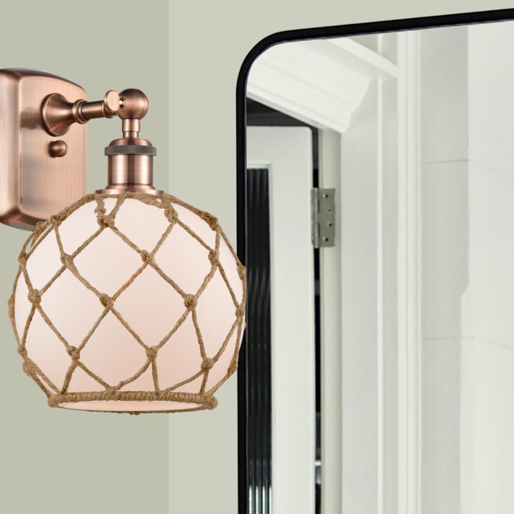 White Farmhouse Glass with Brown Rope