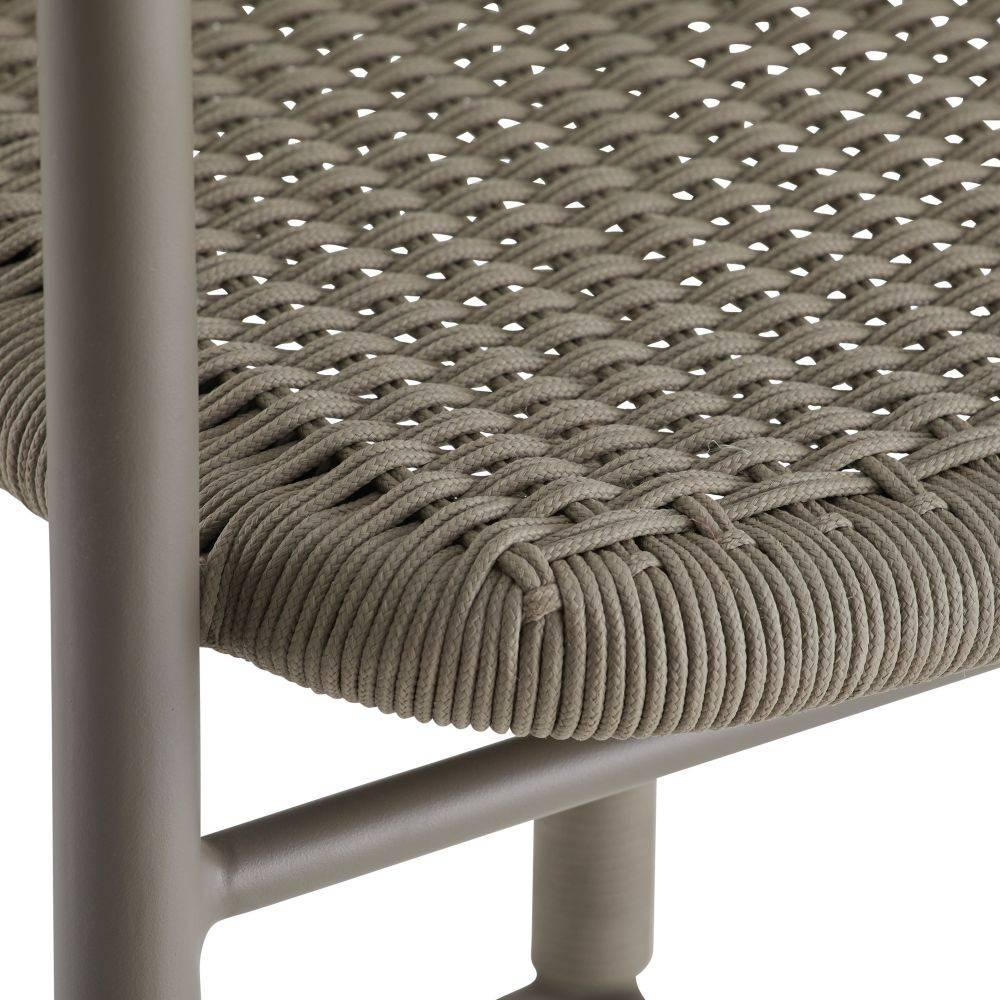 Wrapped woven details elevate the simple, bistro-style body of the Feller. The graphic nature of its aluminum form is highlighted with a tone-on-tone gray powder coat. Finished with a sturdy fossil synthetic rope seat, this contemporary bar stool makes a stylish addition to any outdoor setting.