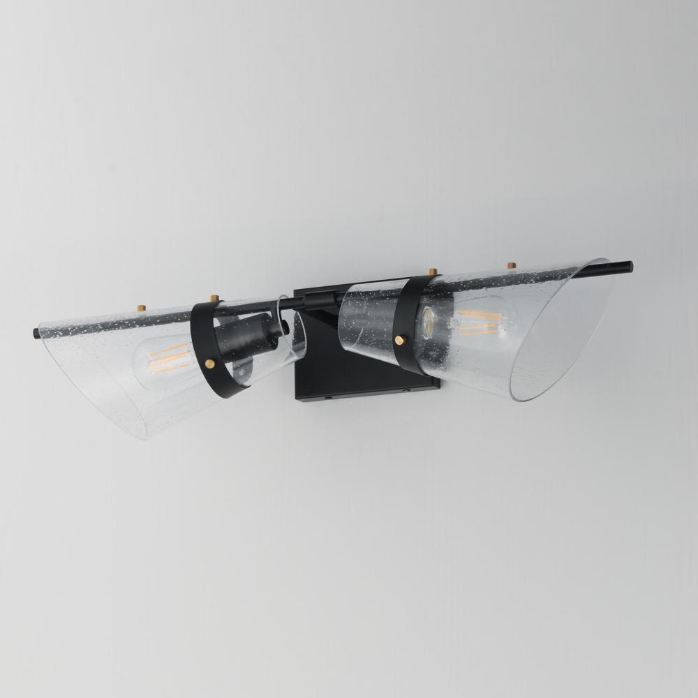 Architectural and effortlessly striking, the Finch collection reimagines classic forms through a modern lens. Tapered cones of clear seedy glass are precision-cut on a diagonal slant, creating dynamic lines that shift with perspective. The Dark Bronze fram