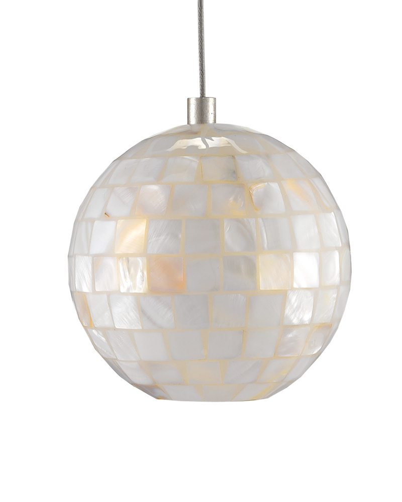 The Finhorn 1-Light Multi-Drop Pendant has an orb-shaped shade covered with small squares of mother of pearl, painstakingly hand-applied. The canopy of this piece is luminous in a painted silver finish. This fixture is among Currey & Company's multi-drop pendant collection, which includes multiple configurations.