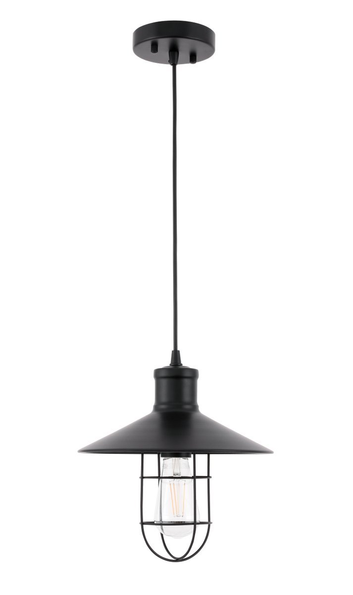 Black finish pendant with a stylish cone shaped and open lattice gridded shade