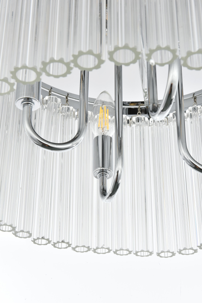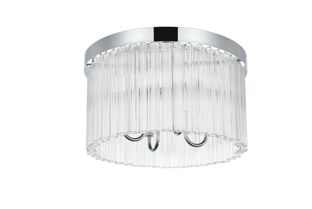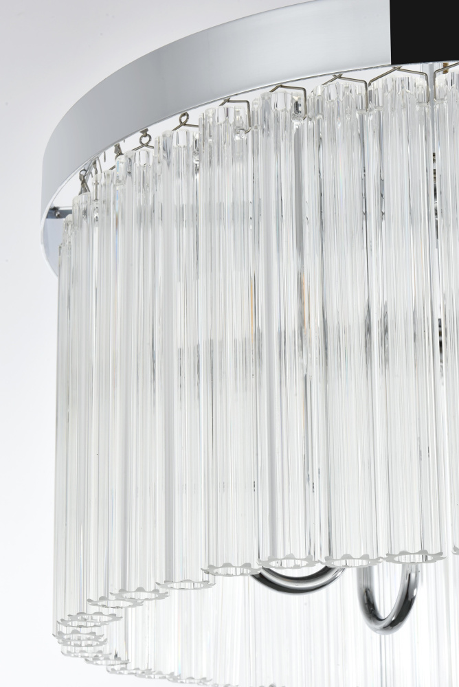 The single-tier flush mount version offers a sleek, low-profile design that brings the shimmering beauty of ribbed glass to rooms with lower ceilings.