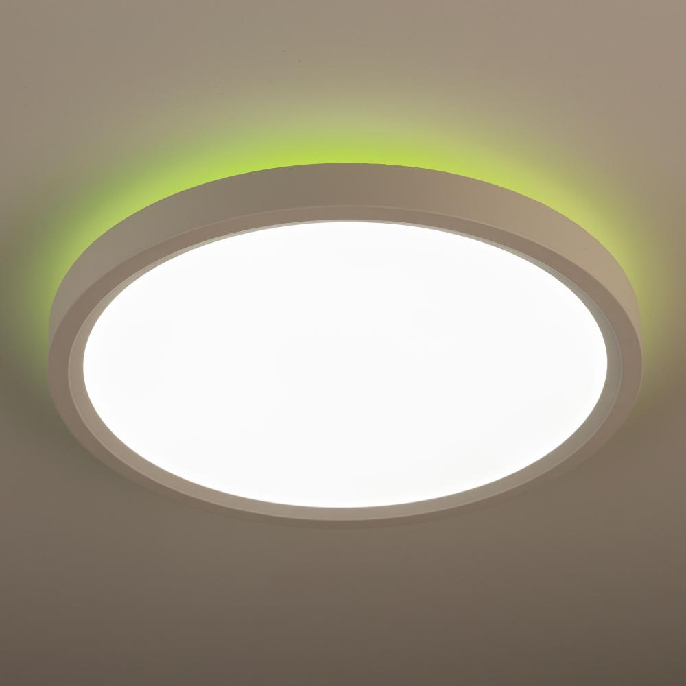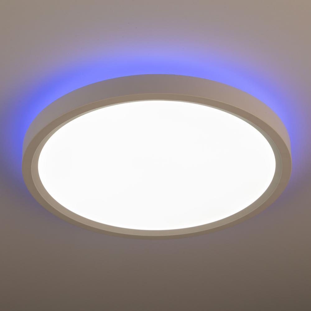 Part of the ARTCRAFT EZ-Link collection of smart enabled lighting devices, the Smart LED Flushmount has unlimited functionality. To start off the design is superurb with a very thin profile and clean white casing. This flushmount has a dual light system. It has a configurable main lighting system, and on the back it has a secondary light source that can be set to any color of the rainbow. Since this unit is smart enabled it can be controlled from any mobile device or smart speaker. Functionality from your mobile device is endless – set timers, dimmers, colors, and more from anywhere in the world since it works via wifi (no hub required).