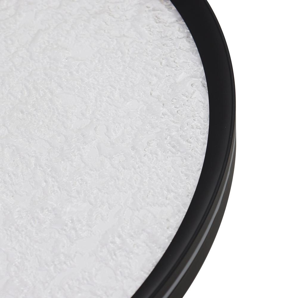 This LED flushmount from the Luna Collection is a celestial masterpiece, blending modern elegance with cosmic allure. Its black frame cradles a textured “moon crater” lens, through which a soft, glittering glow emanates, evoking the magic of starlit skies. A subtle side cutout allows ambient light to gracefully spill onto the ceiling, creating a halo-like effect that transforms any space into a serene sanctuary. The frame of this flushmount is black.