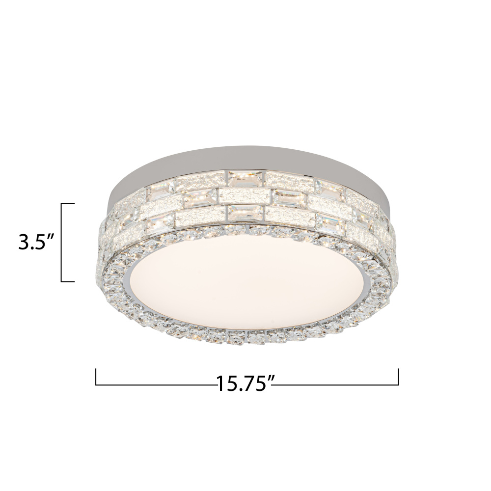 Glistening like a crown of starlight, this LED crystal flushmount from the “Elegance” collection offers a breathtaking harmony of luxury and functionality. Its polished nickel frame embraces a dazzling array of crystals, while the 3CCT switch allows you to tailor the ambiance with warm, neutral, or cool light (3K, 4K, 5K). This model has a glass bottom lens.