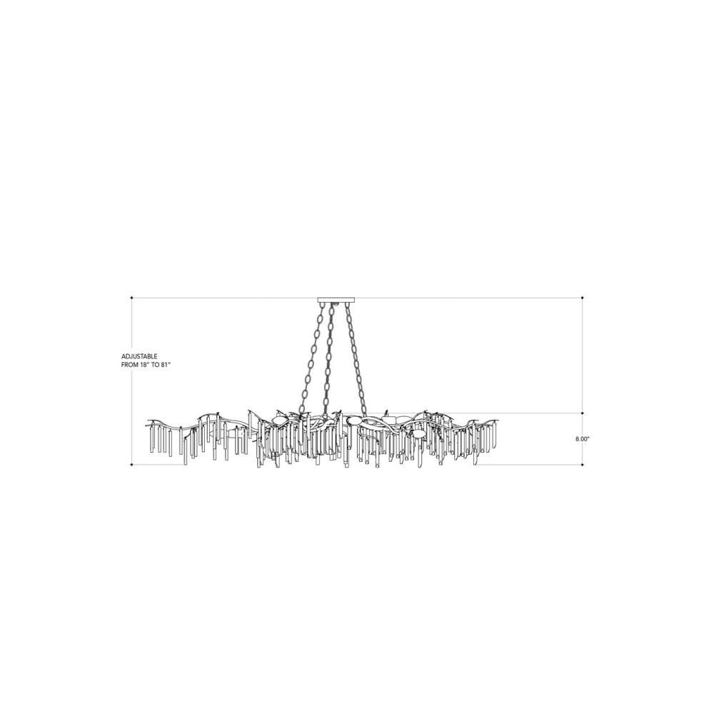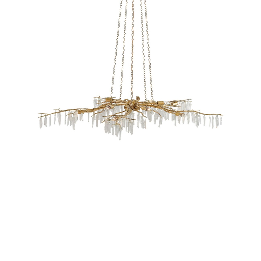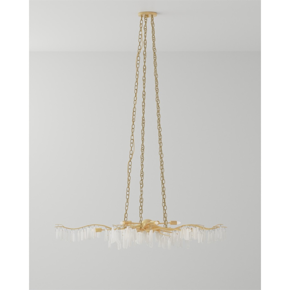 Part of our Aviva Stanoff Collection, the Forest Light Gold Chandelier is an exceptional work of art dripping with quartz crystals. The washed Lucerne gold finish is a perfect complement to the quartz on this sculptural ten-light chandelier. Adjustable from 18" to 81" with use of included chain/rod kit/cable. If your space calls for a longer drop, additional chain/rods/cable is available for purchase.