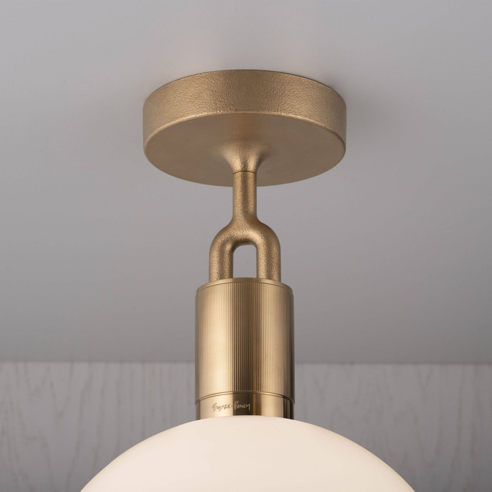 A ceiling light, combining machined and cast solid metal, all refined by hand. It features our cast forked detailing and signature diamond-cut linear knurling. The light comes complete with a handblown opal glass globe and Forked-specific dimmable Buster Bulb, casting a functional ambient light in this configuration.