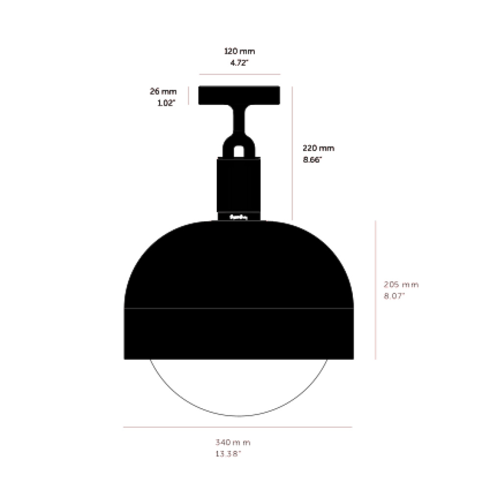 A ceiling light and shade, combining machined, hand-spun and cast solid metal, all refined by hand. It features our cast forked detailing and signature diamond-cut linear knurling. The light comes complete with a handblown opal glass globe and Forked-specific dimmable Buster Bulb, casting a functional ambient light in this configuration.