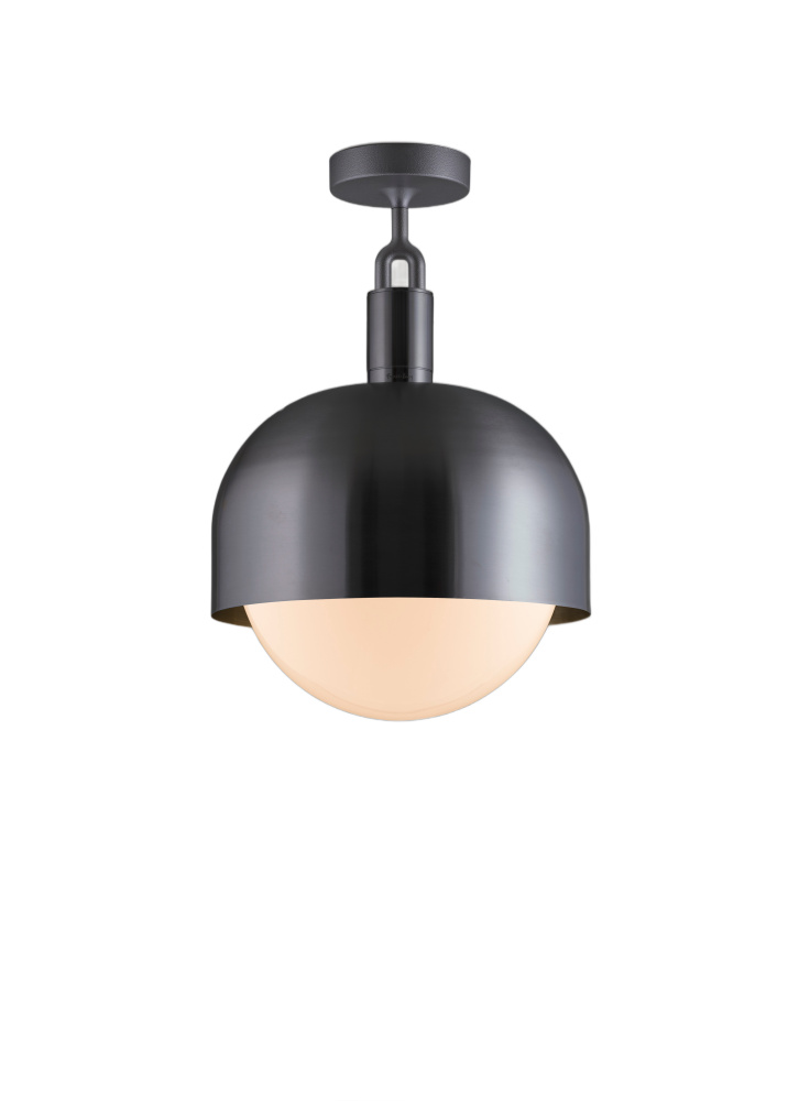 A ceiling light and shade, combining machined, hand-spun and cast solid metal, all refined by hand. It features our cast forked detailing and signature diamond-cut linear knurling. The light comes complete with a handblown opal glass globe and Forked-specific dimmable Buster Bulb, casting a functional ambient light in this configuration.