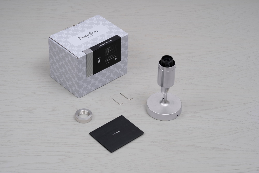 A ceiling light and shade, combining machined, hand-spun and cast solid metal, all refined by hand. It features our cast forked detailing and signature diamond-cut linear knurling. The light comes complete with a handblown opal glass globe and Forked-specific dimmable Buster Bulb, casting a functional ambient light in this configuration.