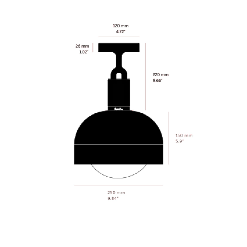 A ceiling light and shade, combining machined, hand-spun and cast solid metal, all refined by hand. It features our cast forked detailing and signature diamond-cut linear knurling. The light comes complete with a handblown opal glass globe and Forked-specific dimmable Buster Bulb, casting a functional ambient light in this configuration.