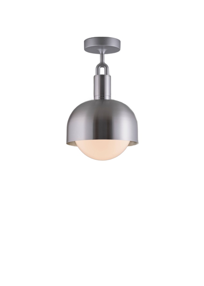 A ceiling light and shade, combining machined, hand-spun and cast solid metal, all refined by hand. It features our cast forked detailing and signature diamond-cut linear knurling. The light comes complete with a handblown opal glass globe and Forked-specific dimmable Buster Bulb, casting a functional ambient light in this configuration.