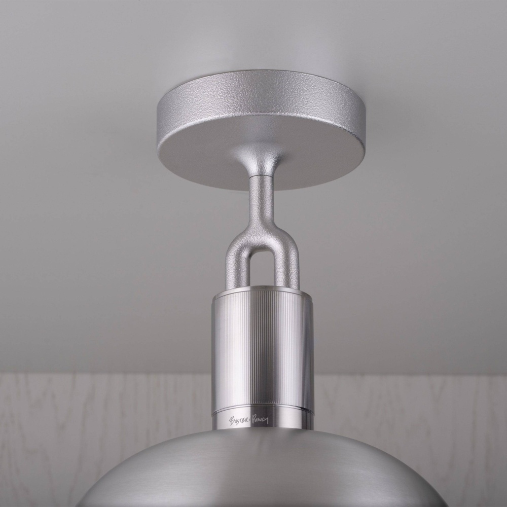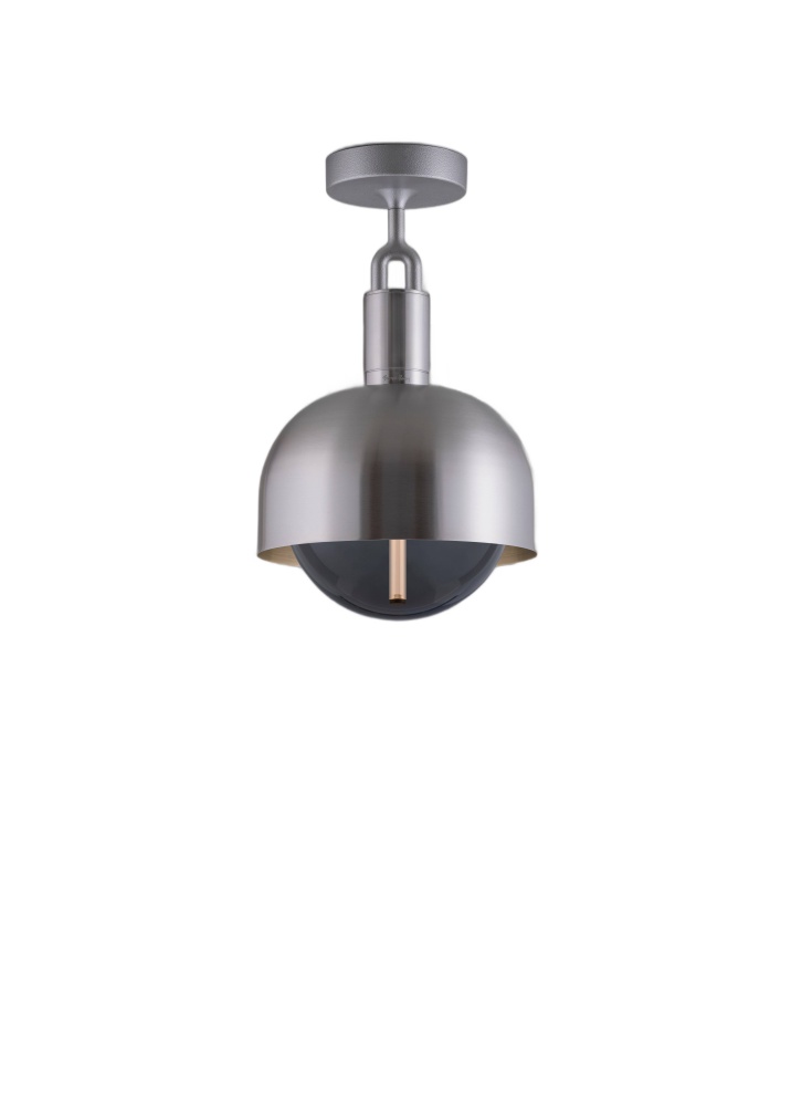 A ceiling light and shade, combining machined, hand-spun and cast solid metal, all refined by hand. It features our cast forked detailing and signature diamond-cut linear knurling. The light comes complete with a handblown smoked glass globe and Forked-specific dimmable Buster Bulb, casting a soft decorative glow in this configuration.
