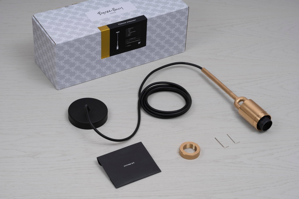 A light pendant, combining machined and cast solid metal, all refined by hand. It features our cast forked detailing and signature diamond-cut linear knurling. The light comes complete with a handblown opal glass globe and Forked-specific dimmable Buster Bulb, casting a functional ambient light in this configuration.