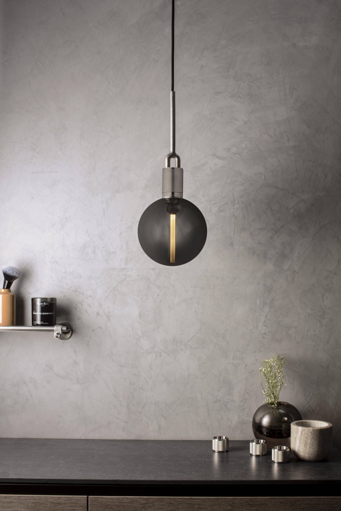 A light pendant combining machined, hand-spun and cast solid metal, all refined by hand. It features our cast forked detailing and signature diamond-cut linear knurling. The light comes complete with a handblown smoked glass globe and Forked-specific dimmable Buster Bulb, casting a soft decorative glow in this configuration.
