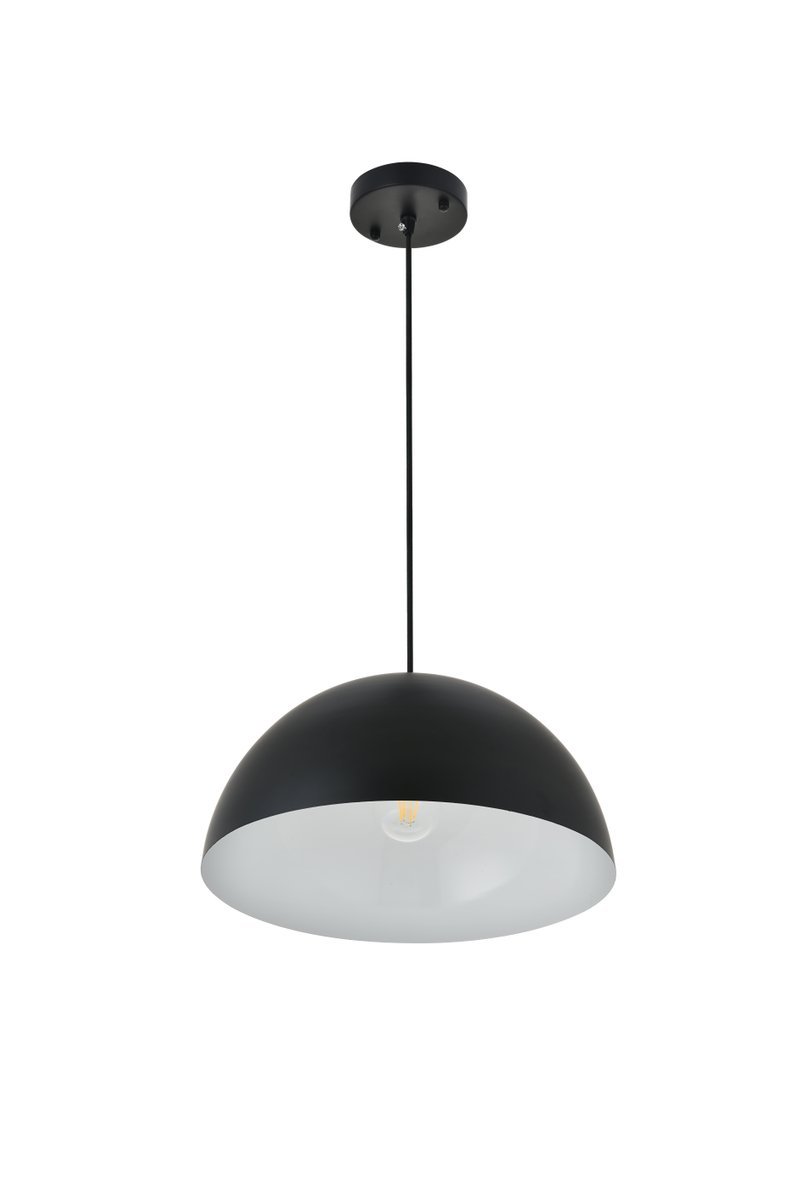 The Forte collection pendant lamp will surely create a modern and bold center point for any room. The hemispherical shade with a black finish exterior and white finish interior creates a dauntless personality that will illuminate any darkness with its reliable light. Without fail, Forte will excel at brightening your home, whether it's at your entryway, living room, or dining room.