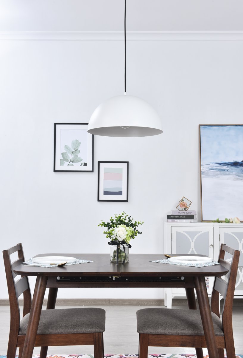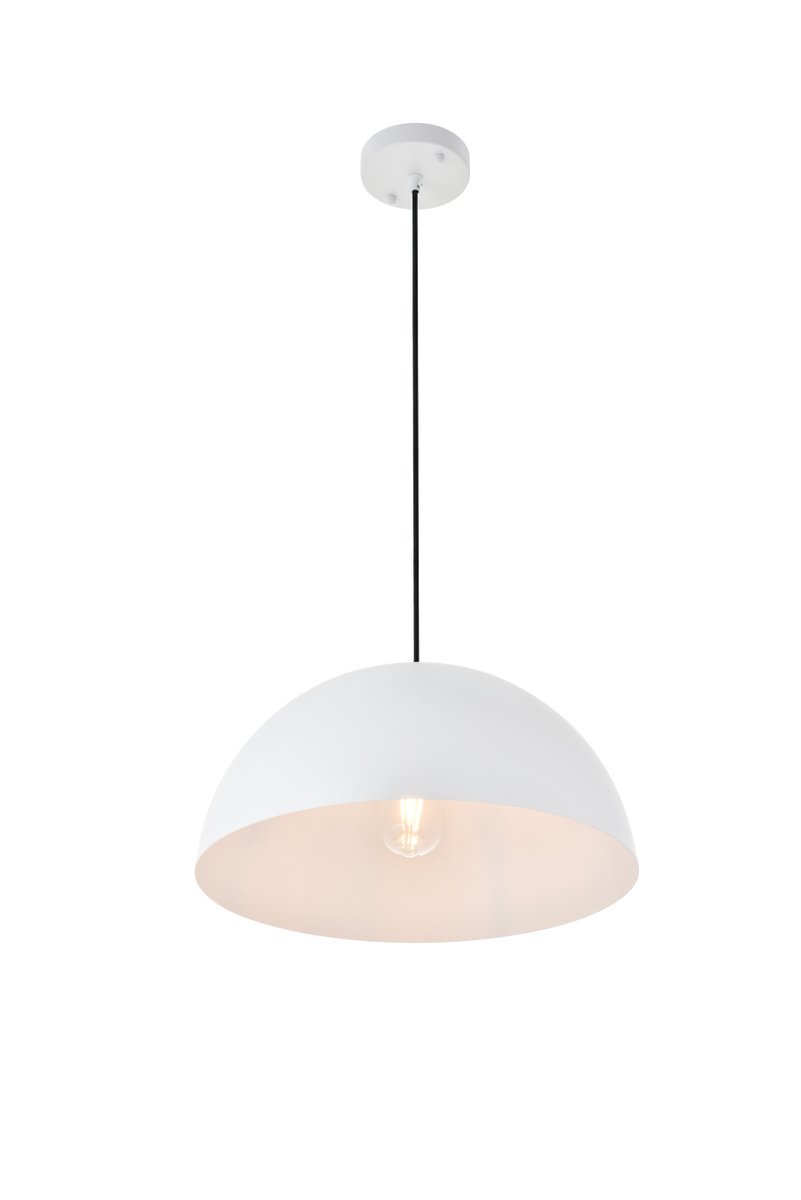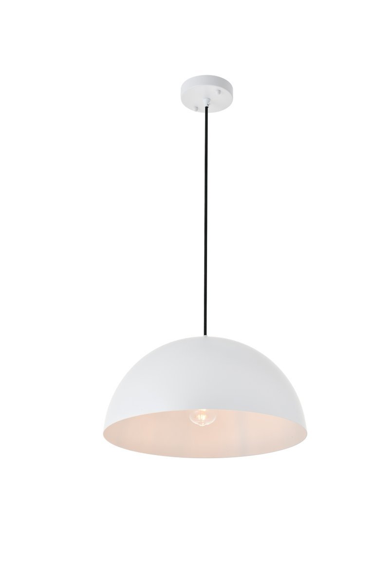 White finish pendant light with dome shaped shade