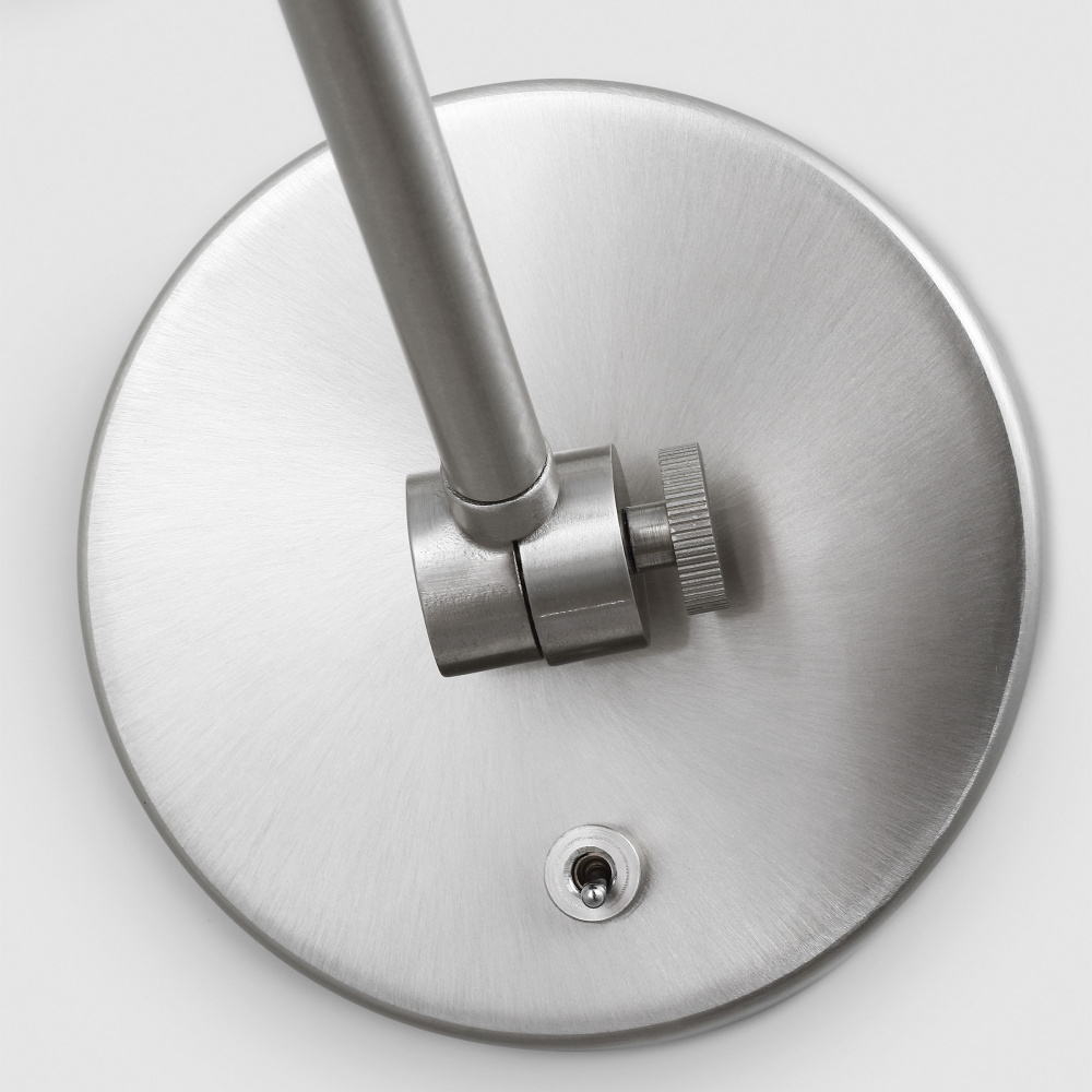 Crafted with Steel in a Brushed Nickel finish with brushed nickel steel shade
