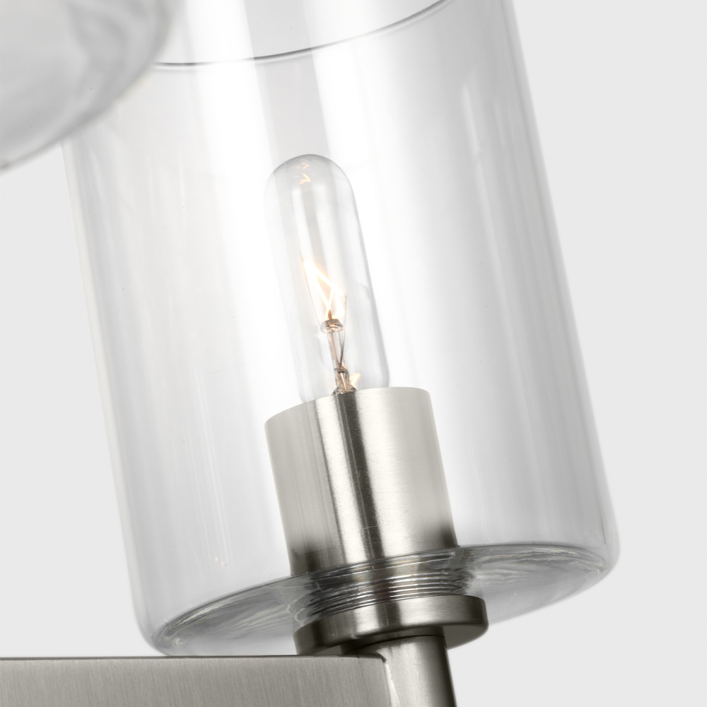 Crafted with Steel in a Brushed Nickel finish with Glass shades