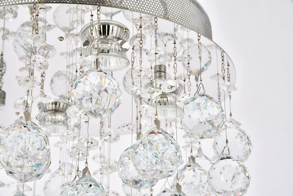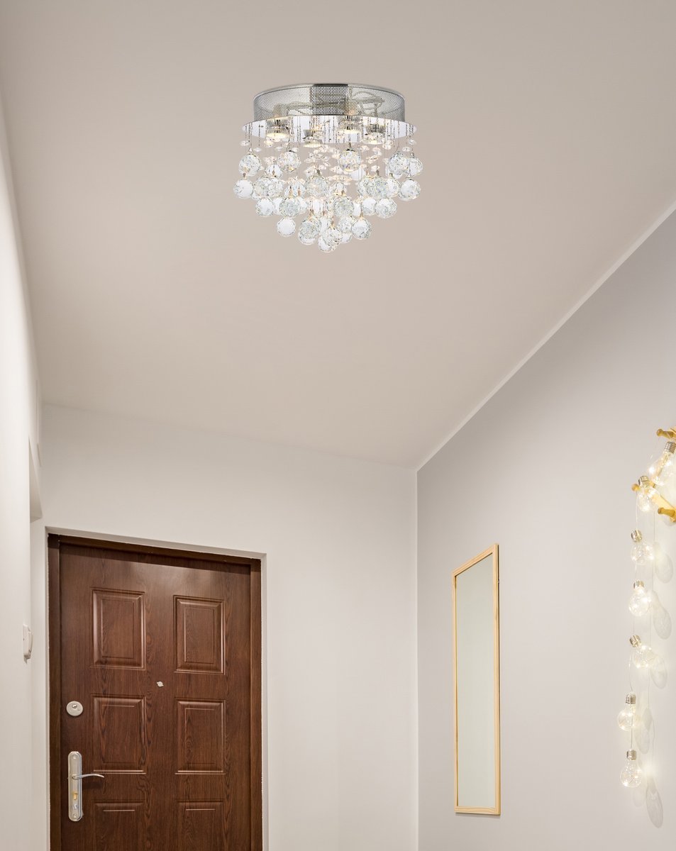 The Galaxy collection is brilliantly distinctive for its flush-mount fixtures’ many dazzling crystals of various sizes and shapes suspended and gently spinning in space. Illumination from the chrome-finish base lights up a room with both direct light emitting downward and refracted radiance from the multi-faceted crystals below. Available in a choice of crystal trims.