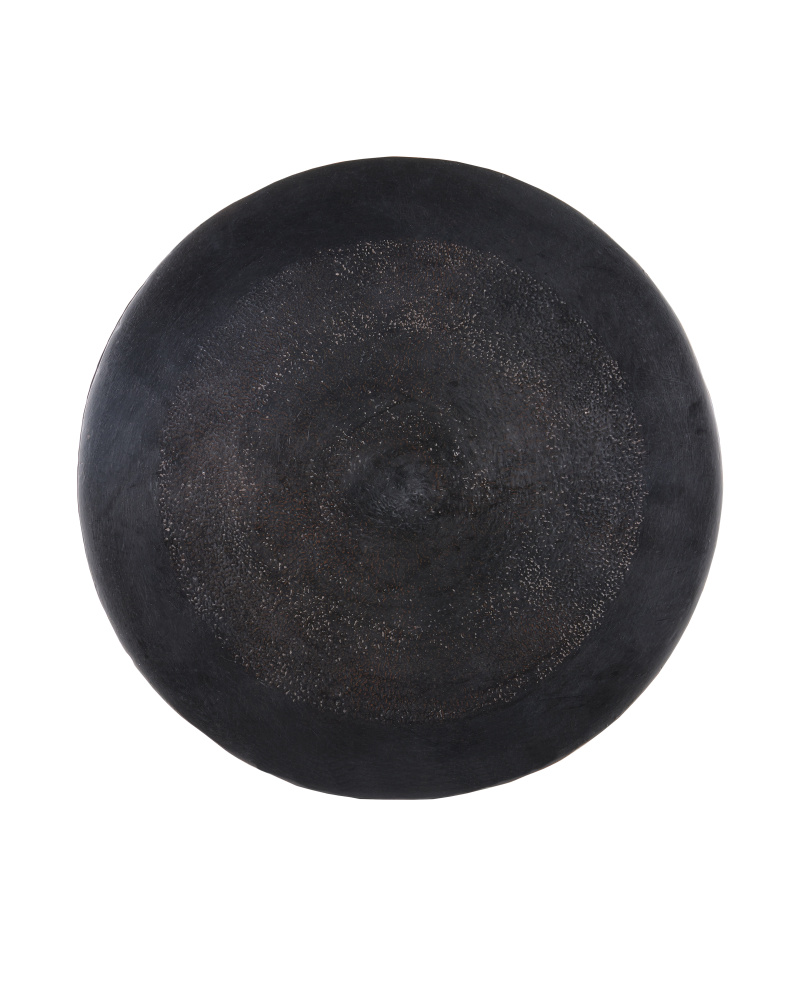 The Gallo Bronze Accent Table is a clean and simple design with a textured surface that enhances its artful personality. The patterning reads like ripples along the entire piece except the top. The color of the nearly black occasional table is accented by the bronze finish, which highlights the character in the material with subtle hints of reddish brown. The implied discs that flow along the thin stem from the top to the base further the artisanal feel of its profile.