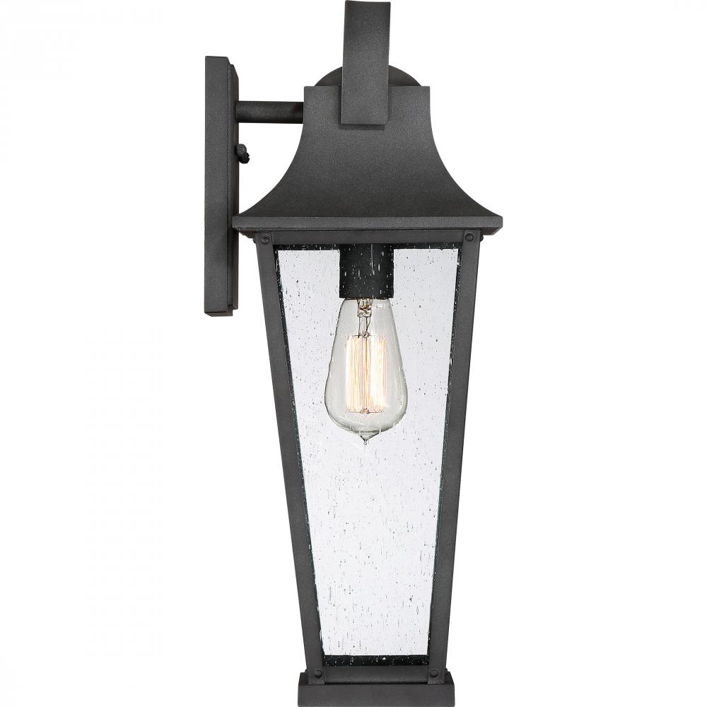 The Galveston is a beautifully crafted addition to any home. Its gently tapered frame and classic top loop add to the collections versatility, while the mottled black finish and clear seedy glass panels showcase the beauty of the vintage filament bulb.