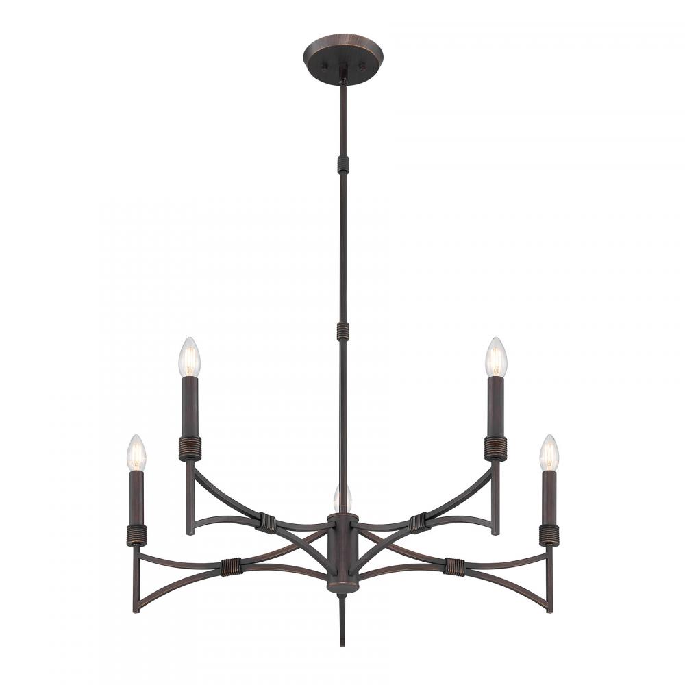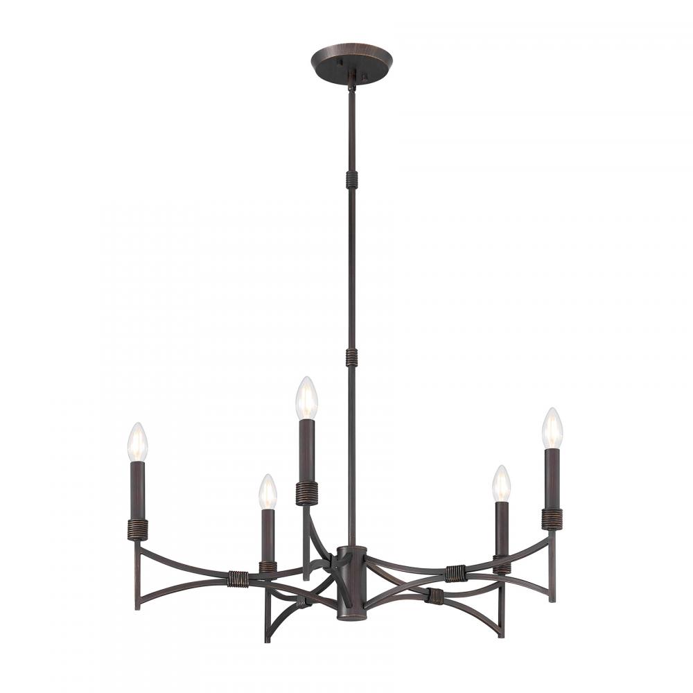 It is often said that lighting is the jewelry of the home. The Savoy House Gardner 5-light chandelier perfectly exemplifies this saying! It features dramatically curving bowtie-like arms that wear wrapped metal accents as if they were bangles. These metal accents also adorn the downrod and the base of each candle. The Champagne Mist finish is bold, beautiful and textural. Gardner is 30" in width and has an adjustable height ranging from 5" to 59". It uses five candelabra size bulbs of up to 60 watts per bulb. Bulbs not included. Comes with two 12" downrods and one 6" downrod.