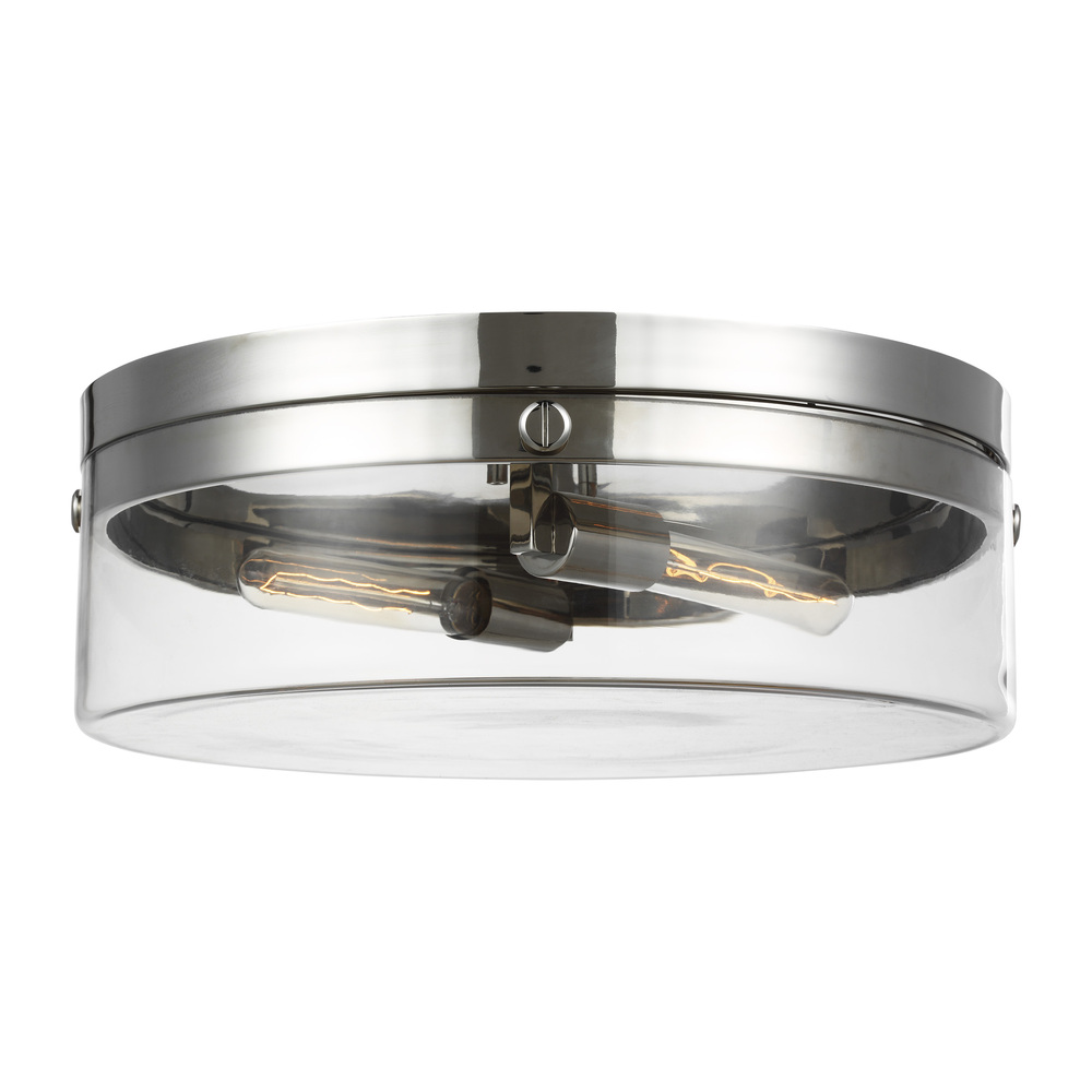 Garrett from Chapman & Myers for Visual Comfort Studio features cylindrical Clear Extruded Glass shades paired with industrial hardware. The two light flush mount fixture in burnished brass supplies ample lighting for your daily needs, while adding a layer of today's style to your home's décor. This striking blend of metal and glass, sophisticated in its simplicity, is both industrial and glamorous. It is sure to inspire a higher level of style wherever it is placed.
