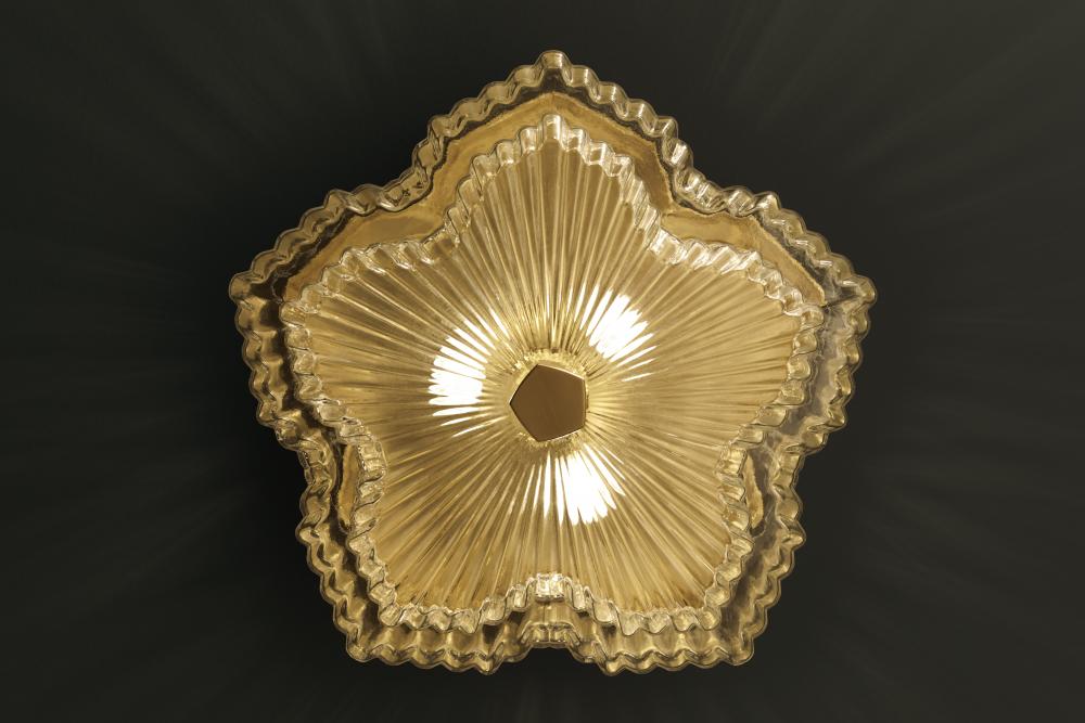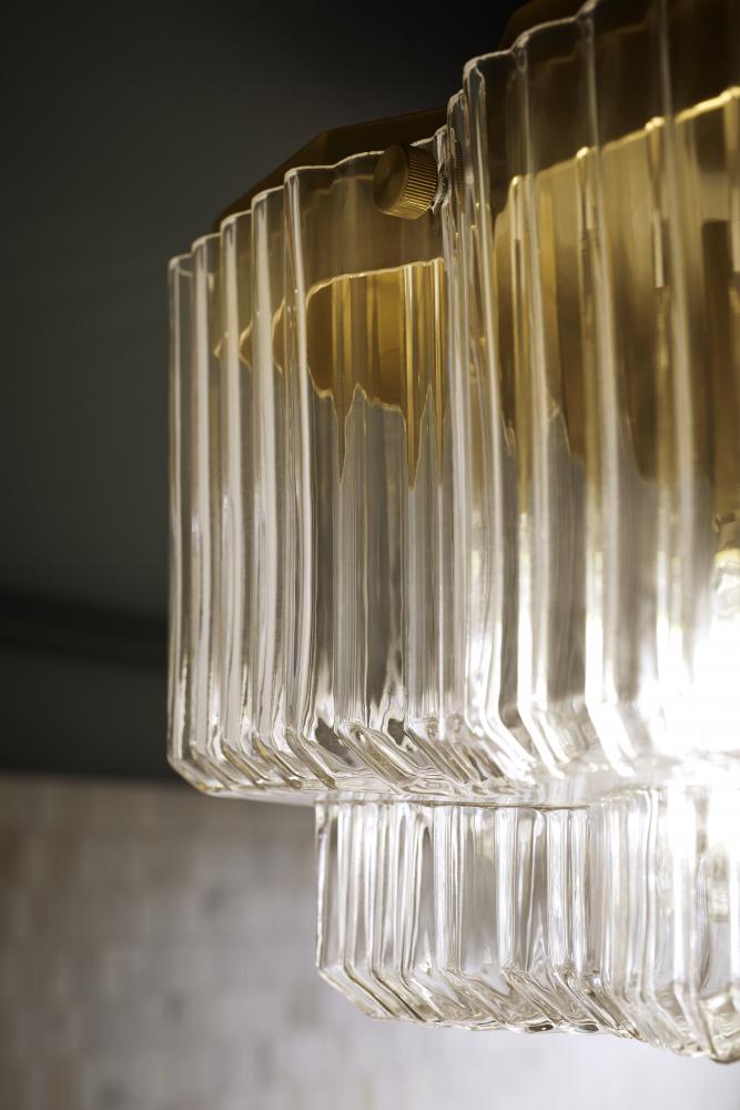 Ridged cylindrical glass shades combine with faceted metals in vintage-inspired fixtures elegant enough for any room