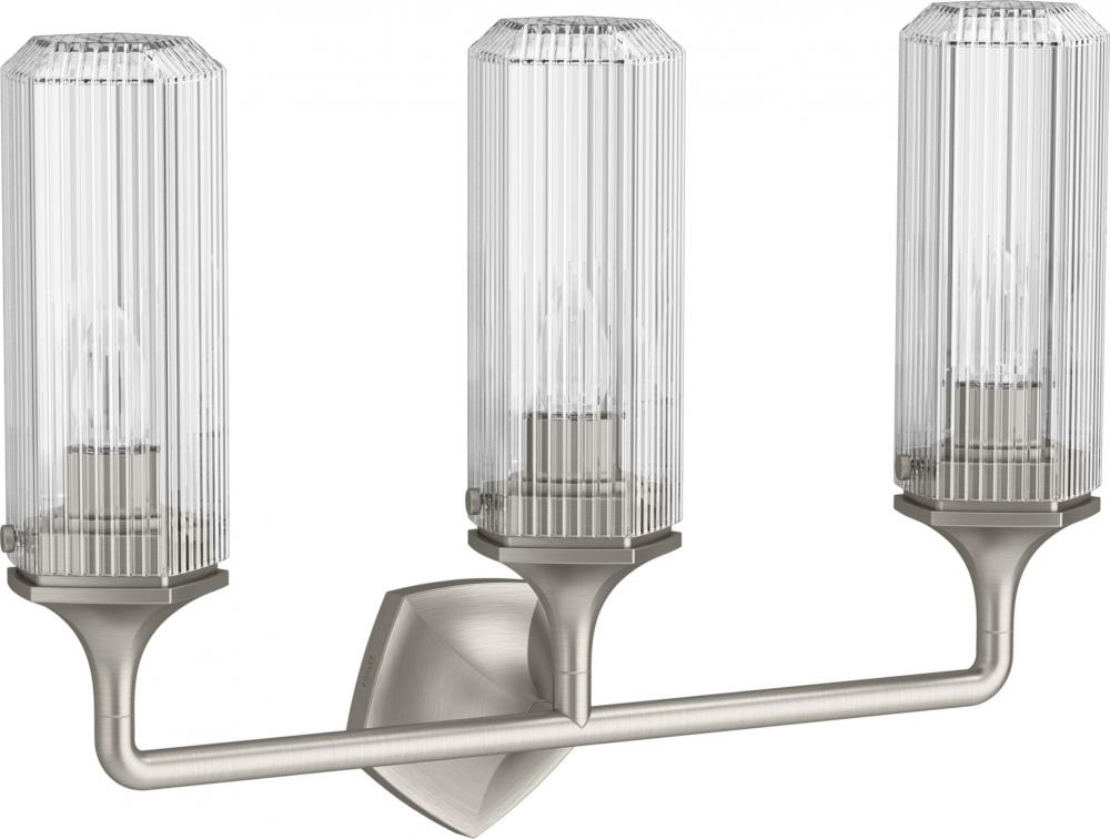 The Occasion lighting collection offers a modern rendition of 1960s Hollywood glamour across sconce, flush-mount, and pendant designs. Faceted metal bases and fluted cylindrical glass shades combine in centerpieces as elegant as they are functional. Like its Golden Age inspiration, the lighting collection evokes a vintage starlet charisma. Alluring and stylish, these statement pieces were created to complement the KOHLER Occasion faucet collection.