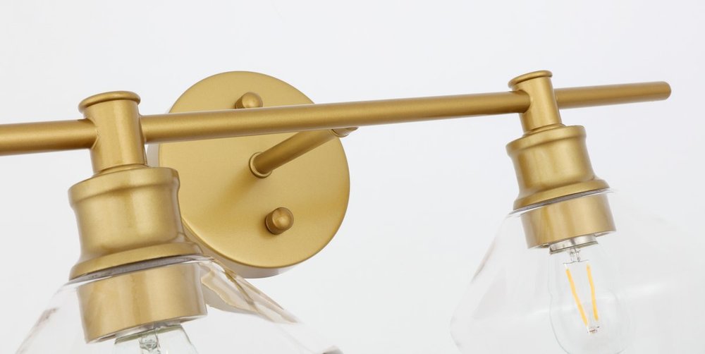 The Gene Collection of lights will be sure to have your guests admire your modern sense of style with the beautiful simplicity of its shape and form. The clean lines of the rhombus shaped shades create the juxtaposition of intricate simplicity, achieving a style that has both form and function. This wall lamp can be oriented facing up or down, but will always illuminate your room. Available in a brass, chrome, or black finish with either a clear or frosted rhombus glass shade, it is the perfect wall lamp to enhance your bathroom, foyer, or hallways, allowing you to always live in sleek contemporary style (light bulbs not included).