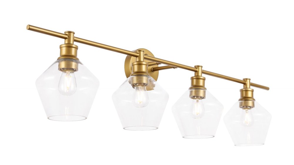 The Gene Collection of lights will be sure to have your guests admire your modern sense of style with the beautiful simplicity of its shape and form. The clean lines of the rhombus shaped shades create the juxtaposition of intricate simplicity, achieving a style that has both form and function. This wall lamp can be oriented facing up or down, but will always illuminate your room. Available in a brass, chrome, or black finish with either a clear or frosted rhombus glass shade, it is the perfect wall lamp to enhance your bathroom, foyer, or hallways, allowing you to always live in sleek contemporary style (light bulbs not included).