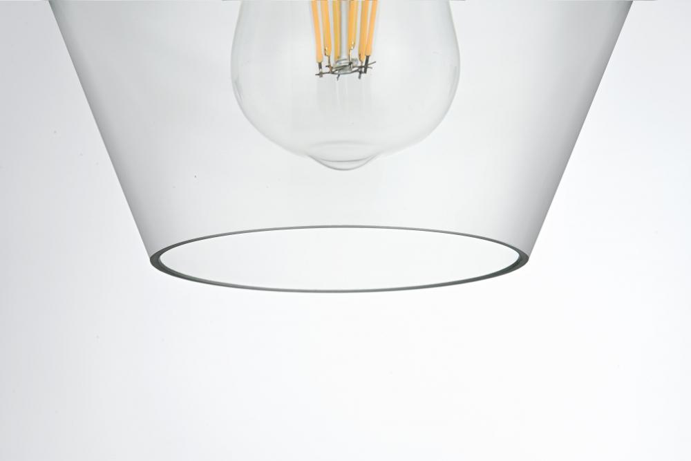 Features a clear glass shade, offering bright, unobstructed light and a clean, modern look.