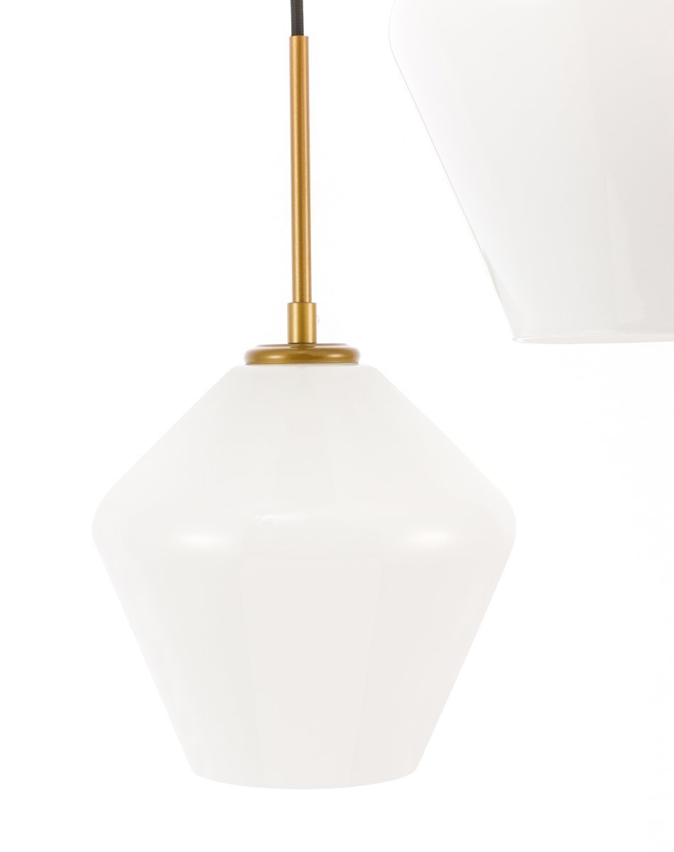 The Gene Collection of lights will be sure to have your guests admire your modern sense of style with the beautiful simplicity of its shape and form. The canopy supports three pendant lights that can be adjusted to different heights in order to create dramatic levels of lights and shadows. The pendant's clean lines created by the cords and diamond shaped shades makes this the perfect lighting addition to any home that is in need of a chic modern flair. Available in a brass, chrome, or black finish, with either a clear or frosted diamond glass shade, enhance your dining room, living room, or bedroom with the Gene Collection hanging pendant and live in sleek contemporary style (light bulbs not included).