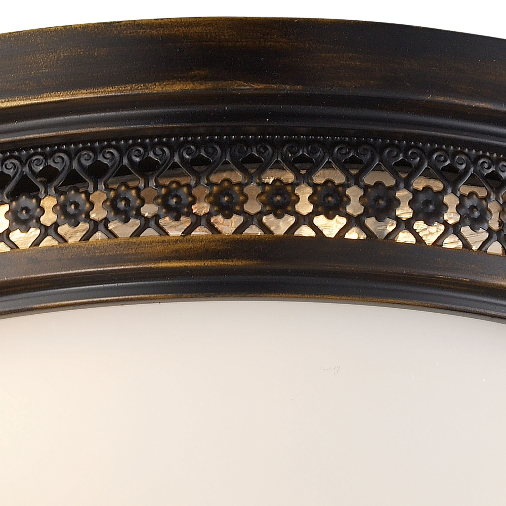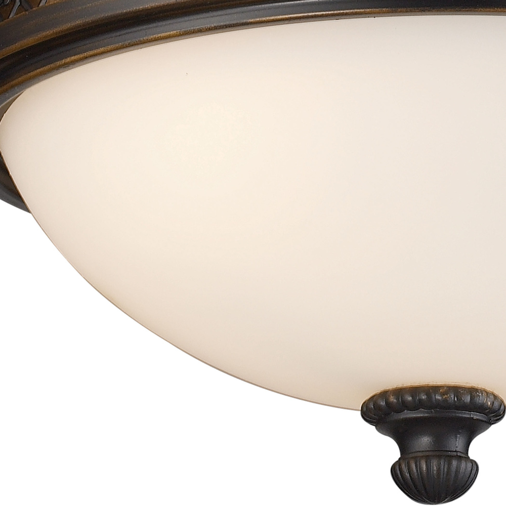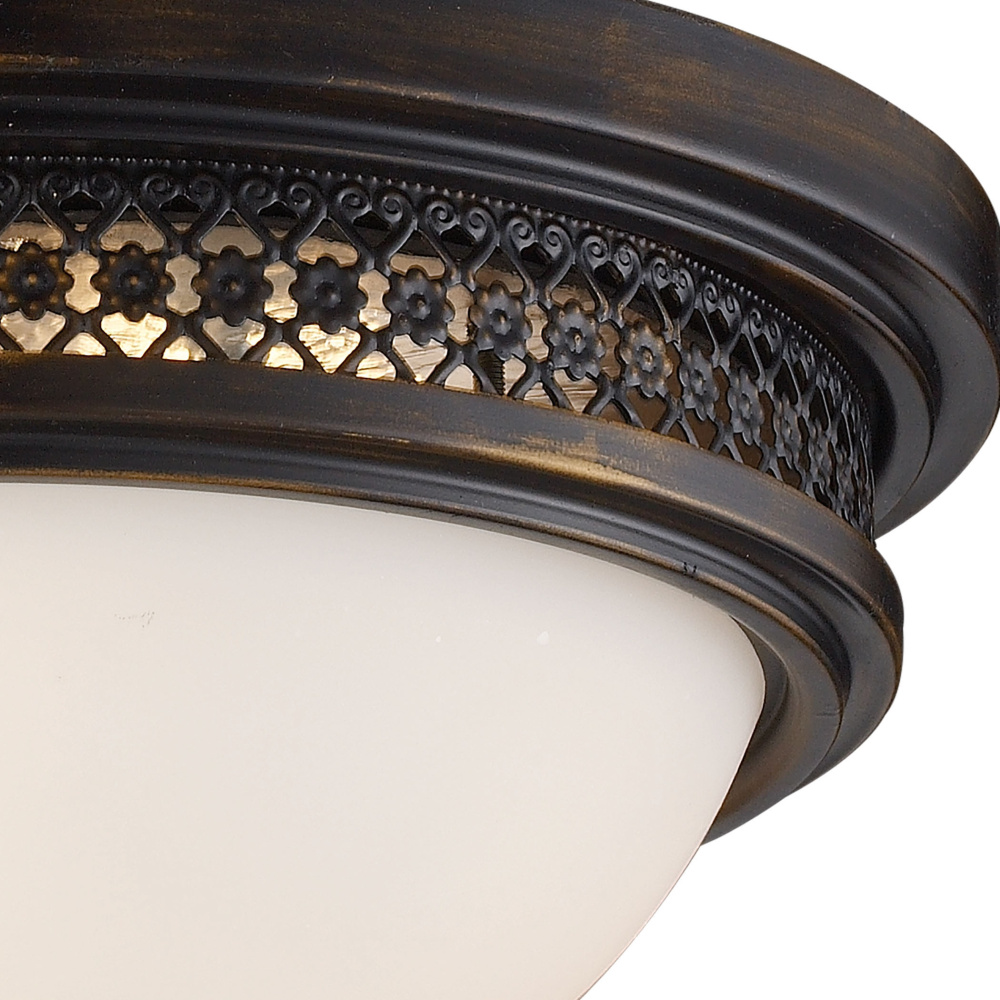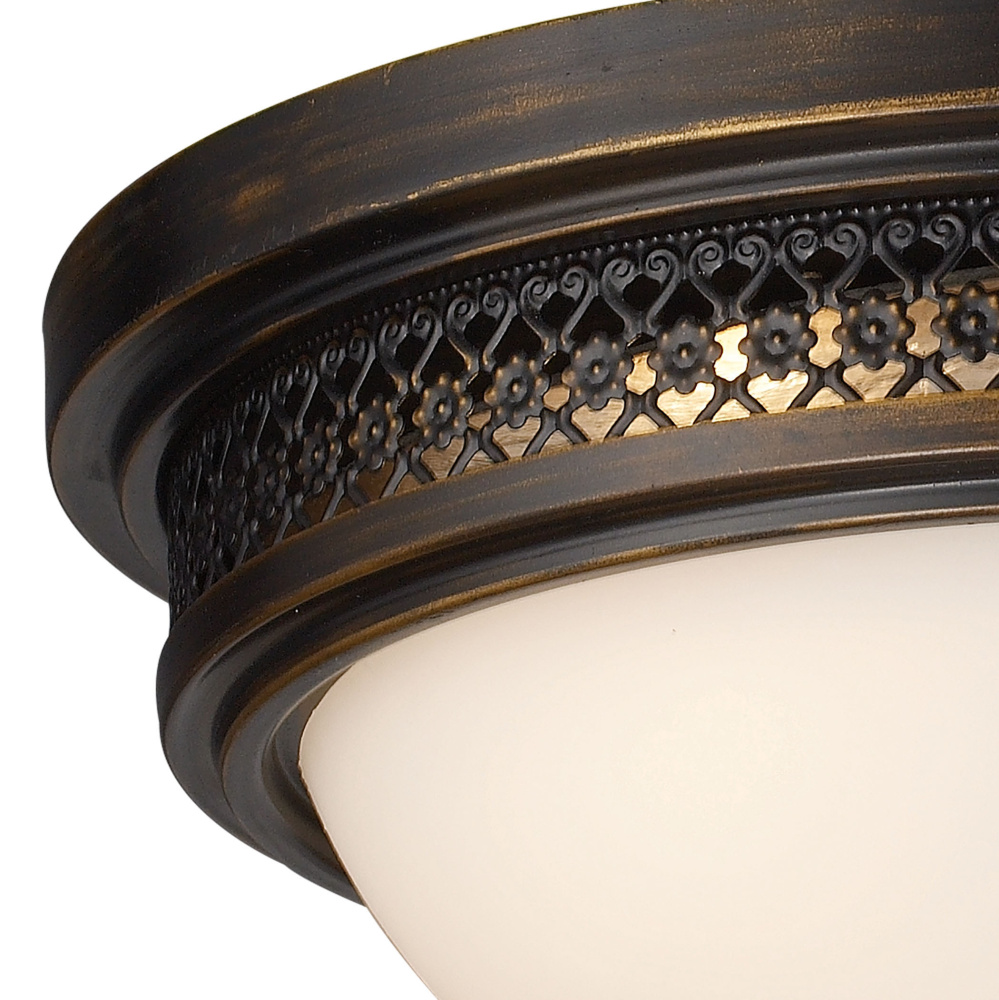 The Flush Mounts collection exhibits the same beautiful detailing as a chandelier, but in a smaller size suitable for lower ceilings and smaller spaces. Each item has an attractive banding on top with white satin glass and a decorative finial.