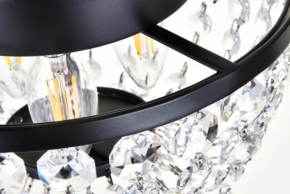 Tiers of clear multi-faceted crystals reflect the soft glow of candelabra bulbs