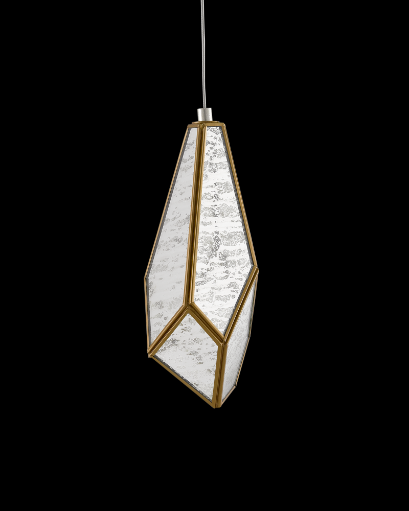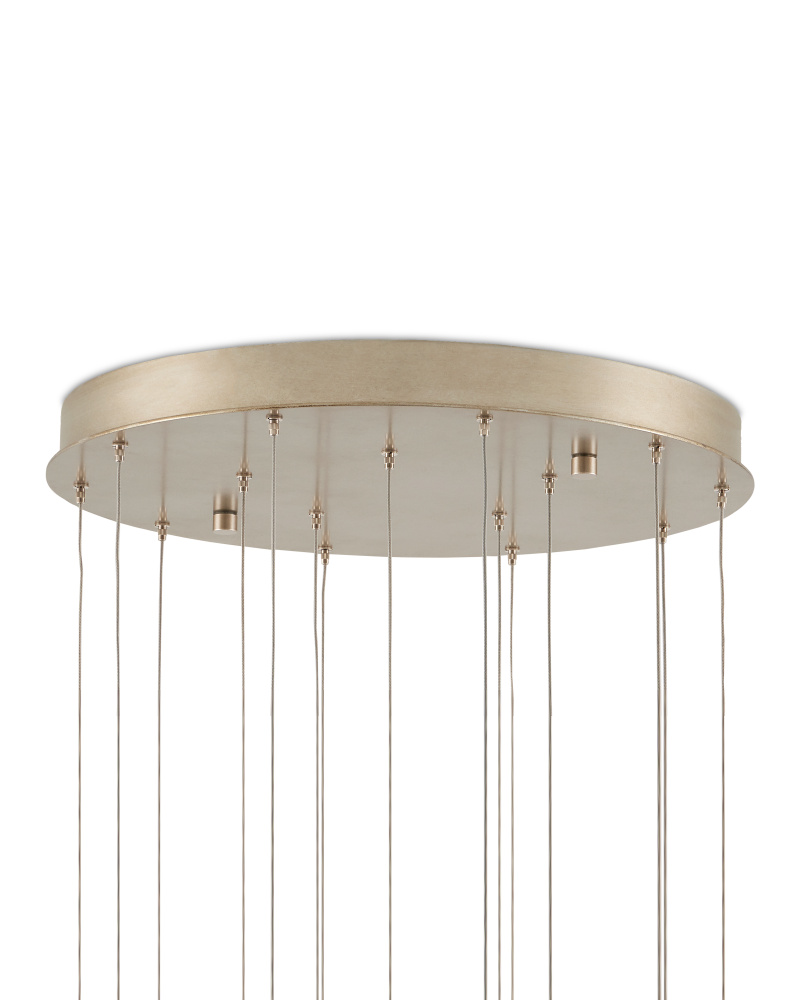 The faceted shades of the Glace Round 15-Light Multi-Drop Pendant are made of panes of Raj mirror joined with seams of metal in a brass finish. The organic shape of the shades and the fact they hang at differing heights brings this mirrored pendant added personality that will make it a piece of jewelry in a space. The canopy of this piece is luminous in a painted silver finish. This fixture is among Currey & Company's multi-drop pendant collection, which includes multiple configurations.