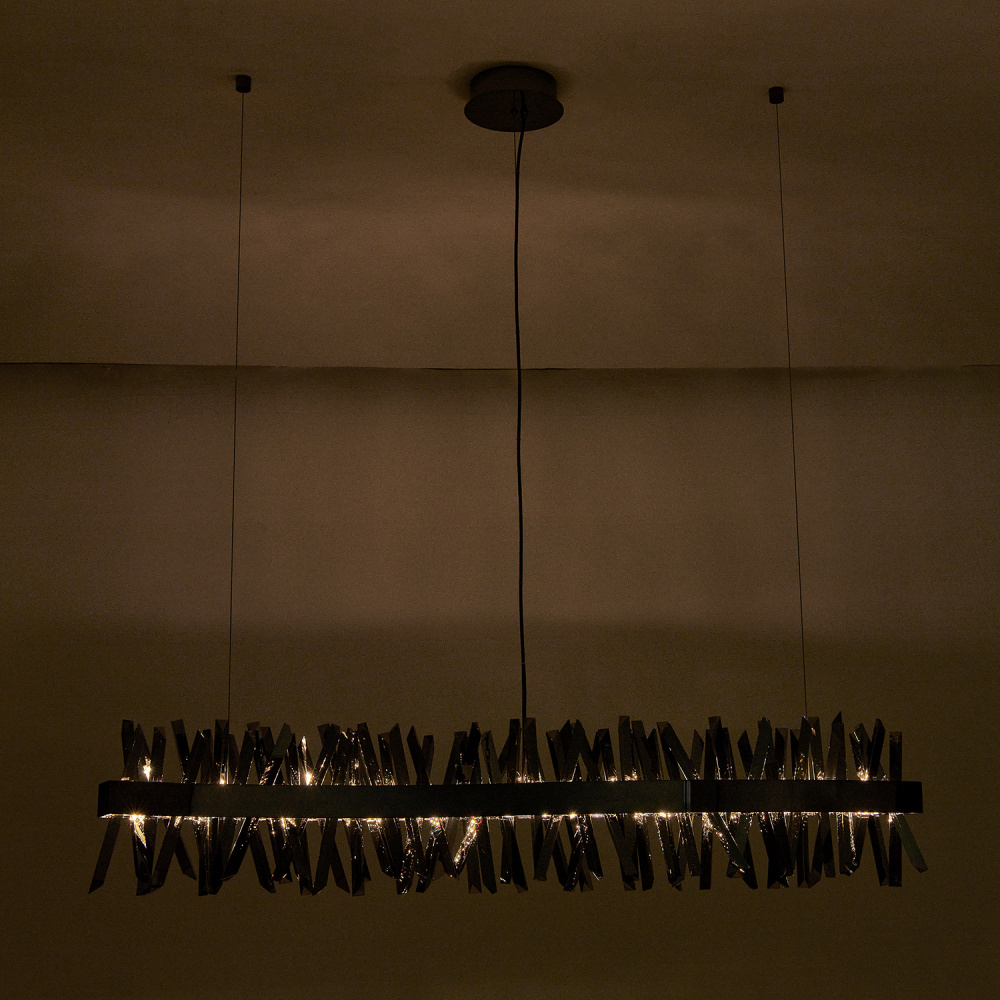 Glacier is the only way to describe this eye-catching collection. Contemporary and bold, this new combination of a Black Nickel (184) frame, smokey ice-like crystals, and the seamless LED lighting adds a modern, sharp addition to this ever popular collection.