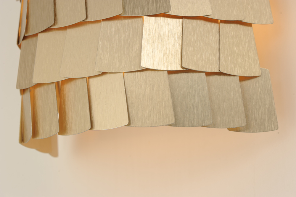 Just off the runway this fashionable collection features aluminum panels finished in Brushed Champagne gracefully draped on a contemporary frame finished in a soft Gold. Beautiful by day and elegant in the evening this collection construction emulates the