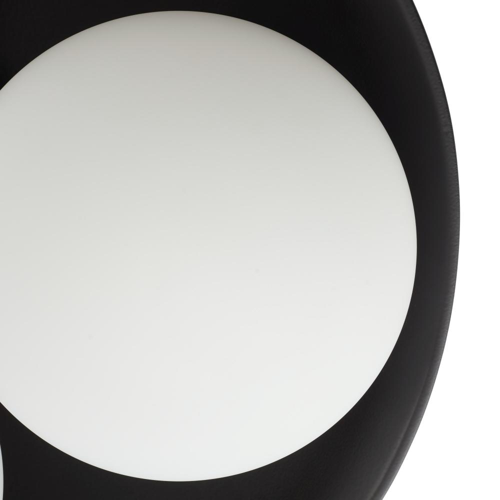 THE GLAZE LARGE FLUSHMOUNT LIGHT FIXTURE FEATURES A TRIO OF FROSTED OPAL GLASS GLOBES COCOONED WITHIN A LARGE MATTE BLACK CERAMIC BOWL AND HELD BY ANTIQUE BRASS-PLATED STEEL. THE PAIRING OF SOFT FROSTED LIGHTS AND MATTE BLACK CERAMIC SHADE CASTS A SUBLTE, FLATTERING GLOW AND CREATES DRAMATIC TENSION BETWEEN TRADITIONAL AND MODERN MATERIALS AND TECHNIQUES. DAMP-RATED, ALTHOUGH LIMITED COVERED OUTDOOR AREAS MAY AFFECT FINISH.