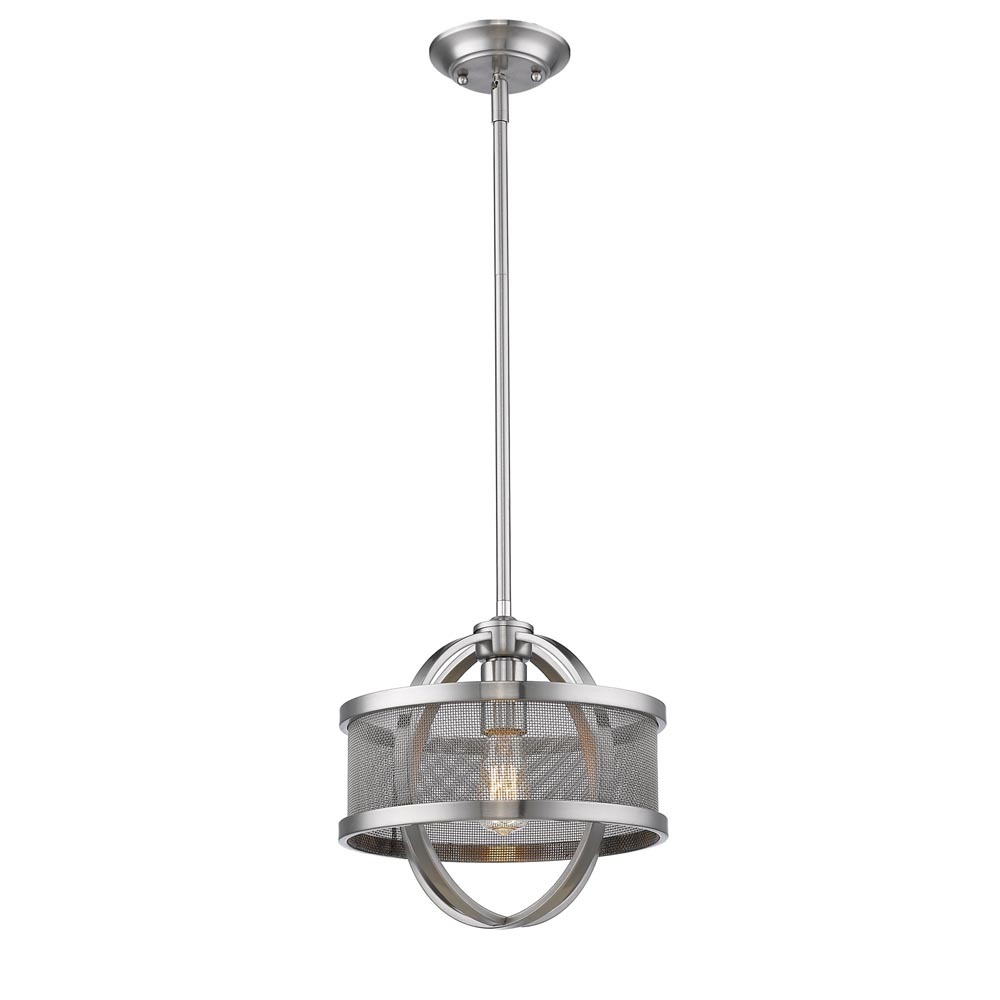 Bring contemporary charm into your home with the Golden Lighting Colson 1-light Pendant. This pendant features a Pewter frame that creates a welcoming atmosphere without any shade. The pendant's timeless design is complemented by a medium-grey hue, offering a subtle warmth and sophistication. This beautiful finish is created through a durable electroplating process, resulting in a satin lustre that gently diffuses light without glare. Ideal for spaces such as kitchens, dining rooms, or entryways, this pendant is Damp Location Rated, making it suitable for covered and semi-enclosed areas. The convertible design allows for adjustable heights from 14.625" to 56.625", adapting to your space and need. The overall dimensions are 9.88"W x 12"H x 9.88"D, and it requires one E26 Medium base bulb (not included) with a maximum wattage of 100. Illuminate your space with elegant simplicity and quality craftsmanship.