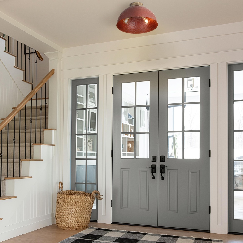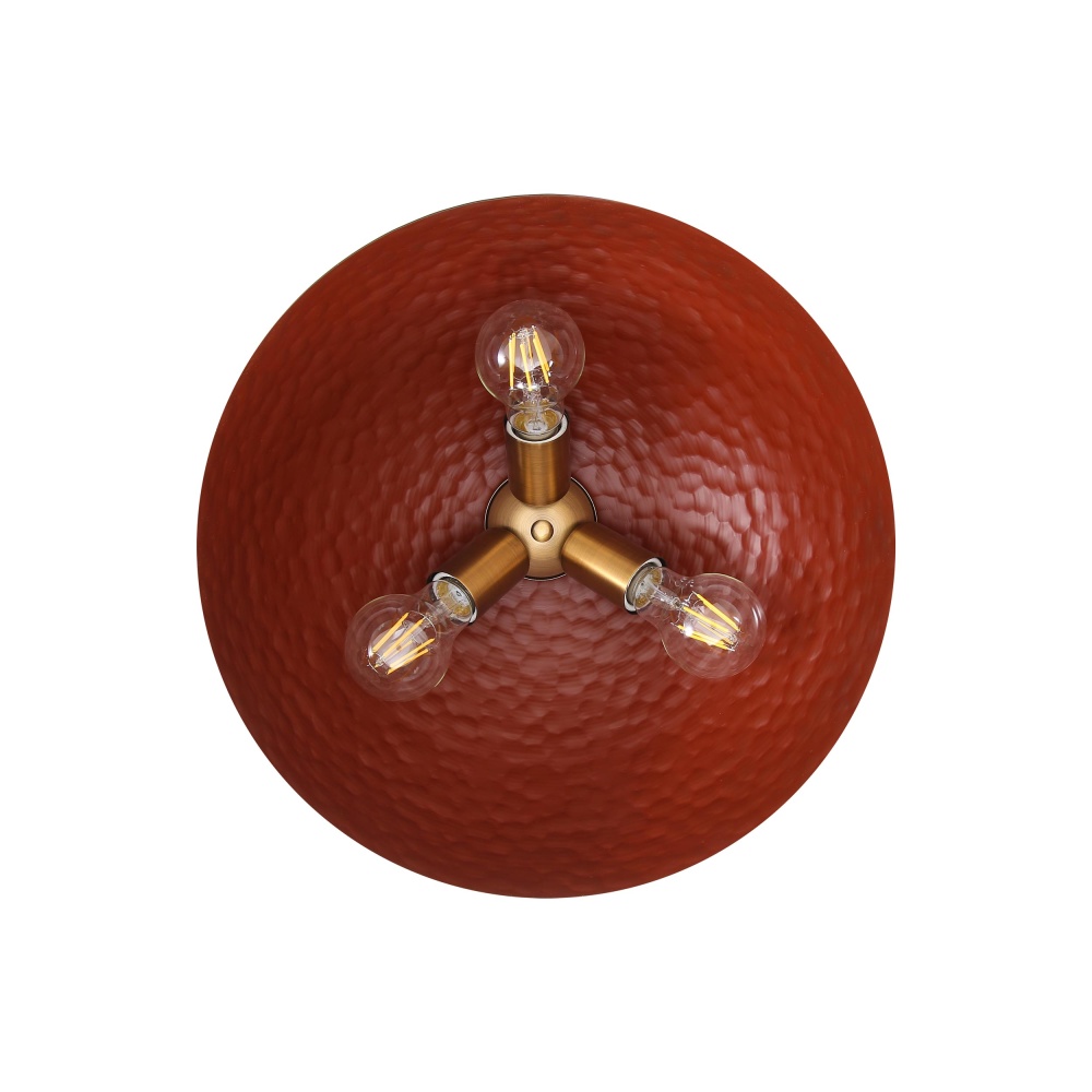 Bring rustic elegance into your home with the Golden Lighting Shepard 3-light Flush Mount. Featuring a metal shade and a Modern Brass frame, it creates a welcoming atmosphere. The metal shade in a rich Russet Clay finish features a smooth surface, offering a warm, earthy reddish-brown hue that adds a bold yet sophisticated statement, perfect for country-inspired designs. Our Modern Brass finish moves beyond traditional yellow brass, delivering a softer, muted hue that beautifully diffuses light, enhancing both modern and classic interiors with a timeless touch. Ideal for low ceilings in hallways, closets, laundry areas, bathrooms, and more, this fixture is Damp Location Rated for covered spaces with occasional moisture. Requires 3 E26 Medium base bulbs (not included), with a maximum of 60 watts per bulb, all within dimensions of 13.75"W x 8"H x 13.75"D. Perfectly styled for a warm, inviting atmosphere, this flush mount provides both functionality and quality in your home.