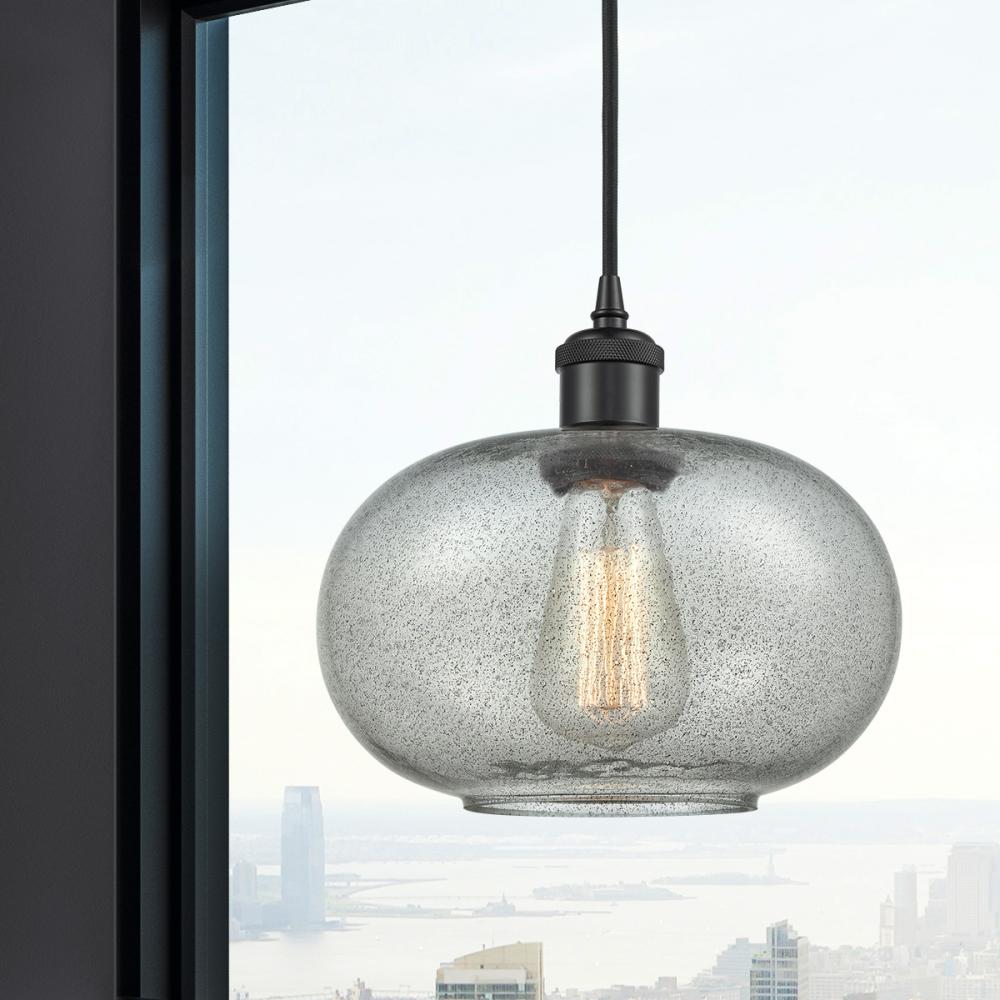 Charcoal Glass is a sparkling combination of Black and Grey "grit" particles infused together in a clear glass while hand blown for a mid-century look.