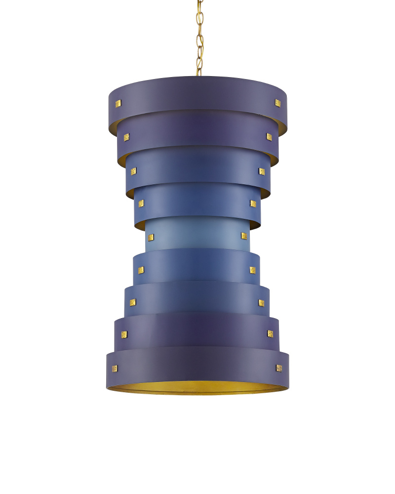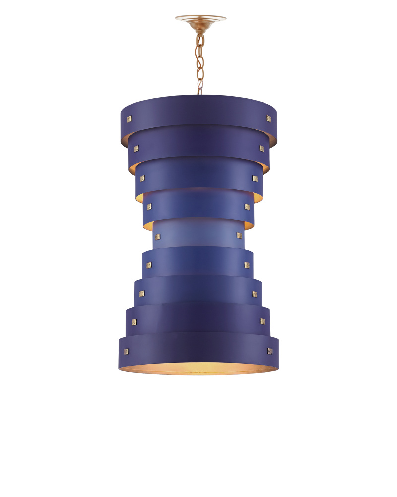 Created in the Color Field tradition of the 1940s, the Graduation Small Chandelier has wide rings of wrought iron in alternating hues of blue. The interiors of the rings in contemporary gold leaf and new gold leaf finishes enhance the glow of the illumination from this blue chandelier. Adjustable from 41.5" to 109.5" with use of included chain/rod kit/cable. If your space calls for a longer drop, additional chain/rods/cable is available for purchase.