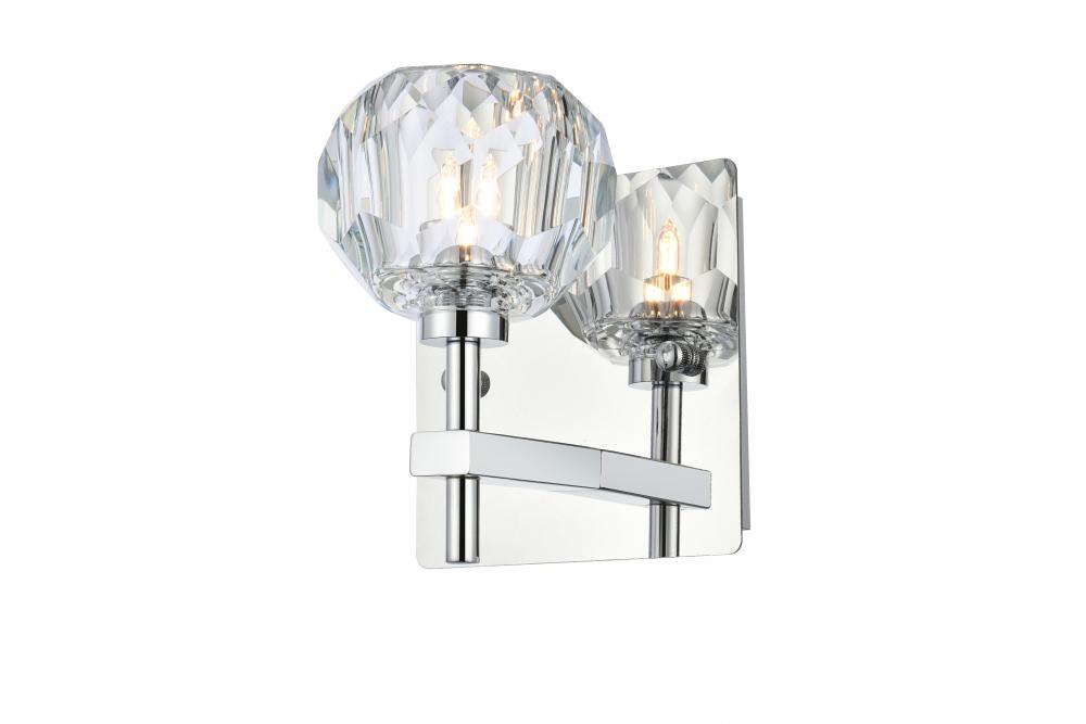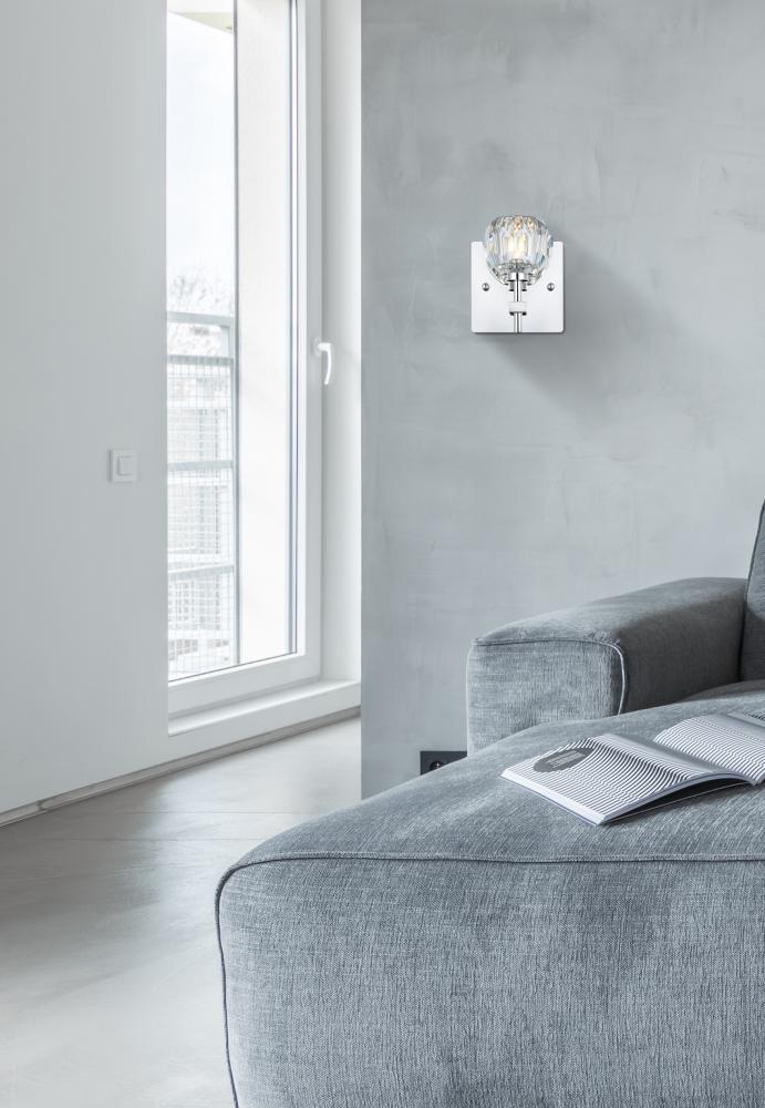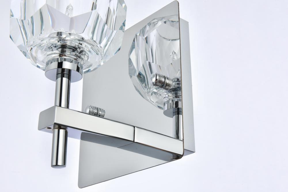 Crafted from iron metal and crystal, it features a square backplate and arms extended with solid K9 crystal ball for a modern and linear look. Each 20W G9 bulb ( not included) is diffused by a faceted clear crystal ball giving the fixture a touch of industrial and glam inspiration. This work of art will add an artful focal point to your entryway, dining room, kitchen, or office. Evoking a sophisticated and timeless aesthetic to any space and will be an instant conversation started with its finely faceted crystal sphere which is polished by hand to reflect and refract light. Available in three different finishes in gold, chrome, and black.