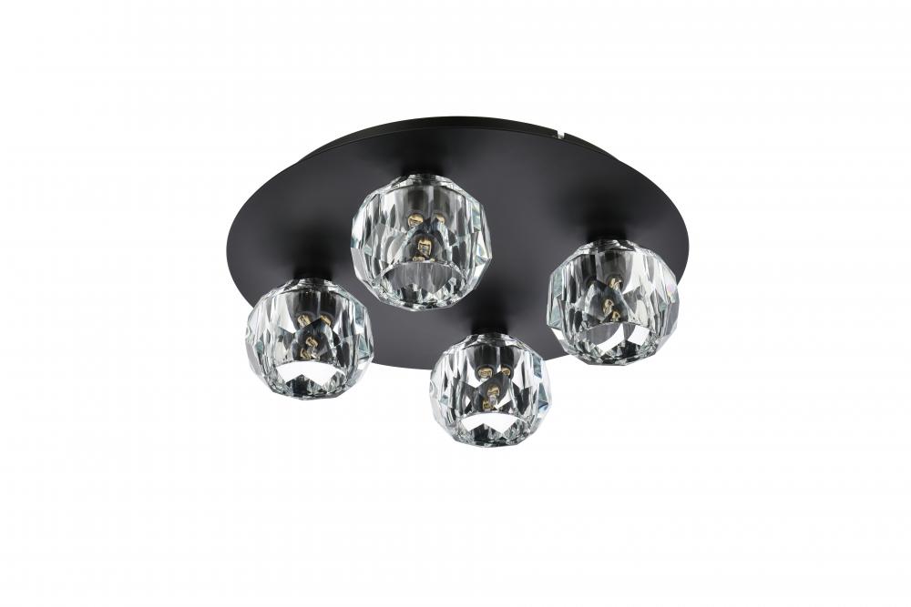Hexagonal and pentagonal facets on the 4 inch crystal spheres tastefully diffuses the soft illumination from each arm